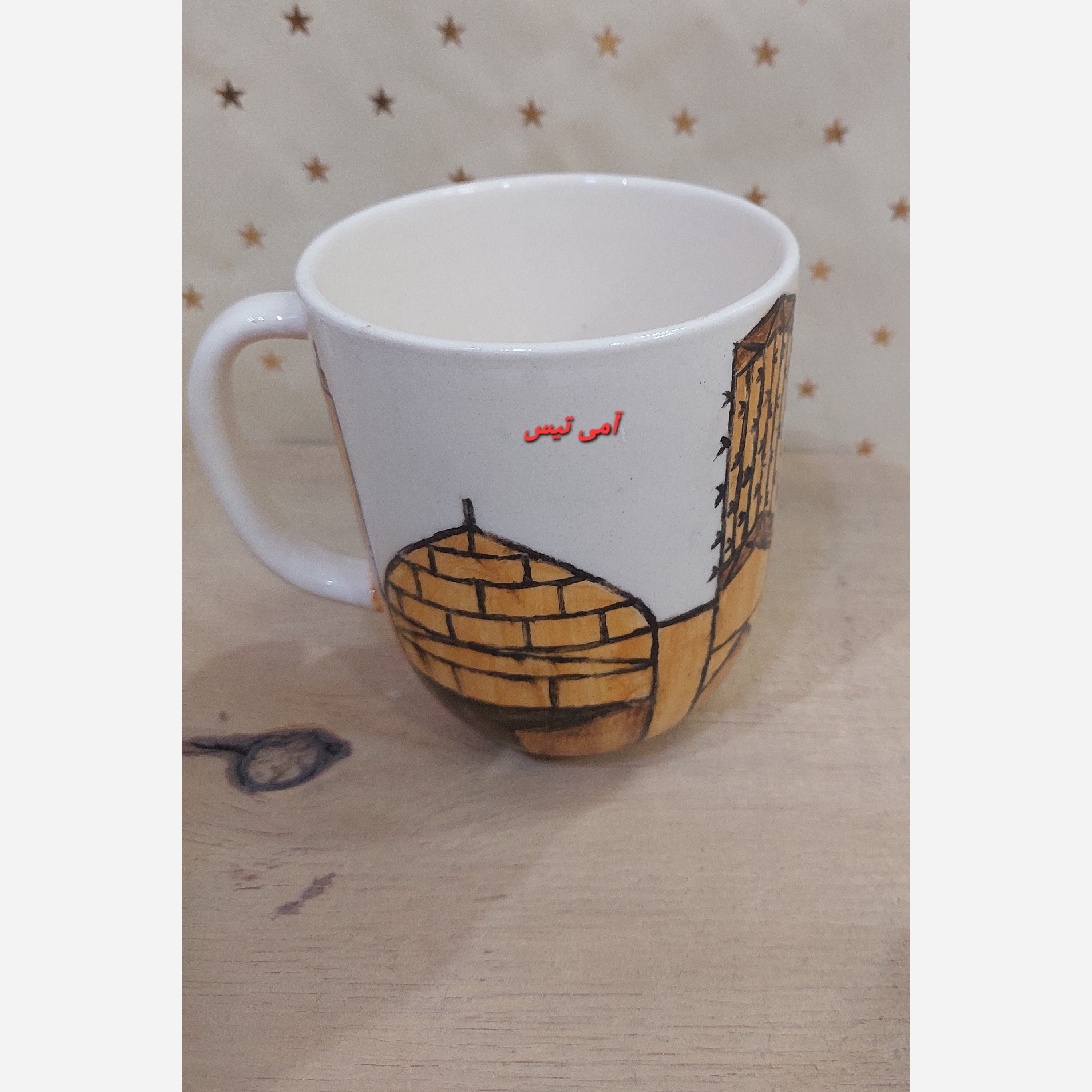 لیوان دسته دار سرامیکی طرح سنتی بادگیرهای یزد، دستساز و قابل شستشو و کاربردی برای شما مبلمونسرا مدل 271916