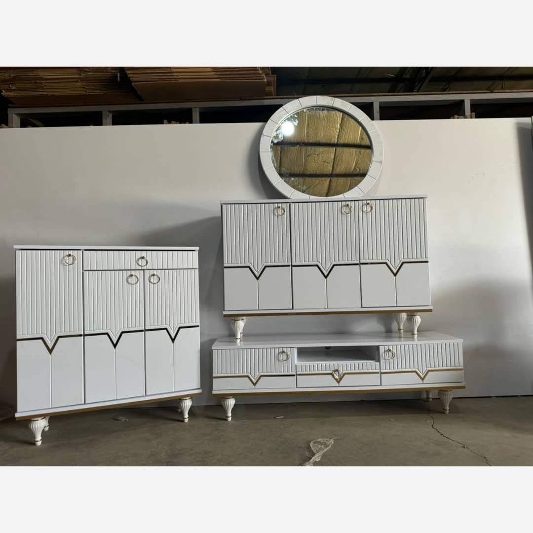 ست آینه و کنسول و جاکفشی و میز تی وی با بهترین کیفیت به سفارش مشتریان محترم)قابل توجه مشتریان عزیز طرح اول موجود نیست و اگر شما از بین این ست چهارتیکه که شامل آینه کنسول،میز تی وی و جاکفشی هست دو تیکه را به انتخاب خود بردارید به قیمت 8000000تقدیم شما میشه.ست کامل 3تیکه 12000000