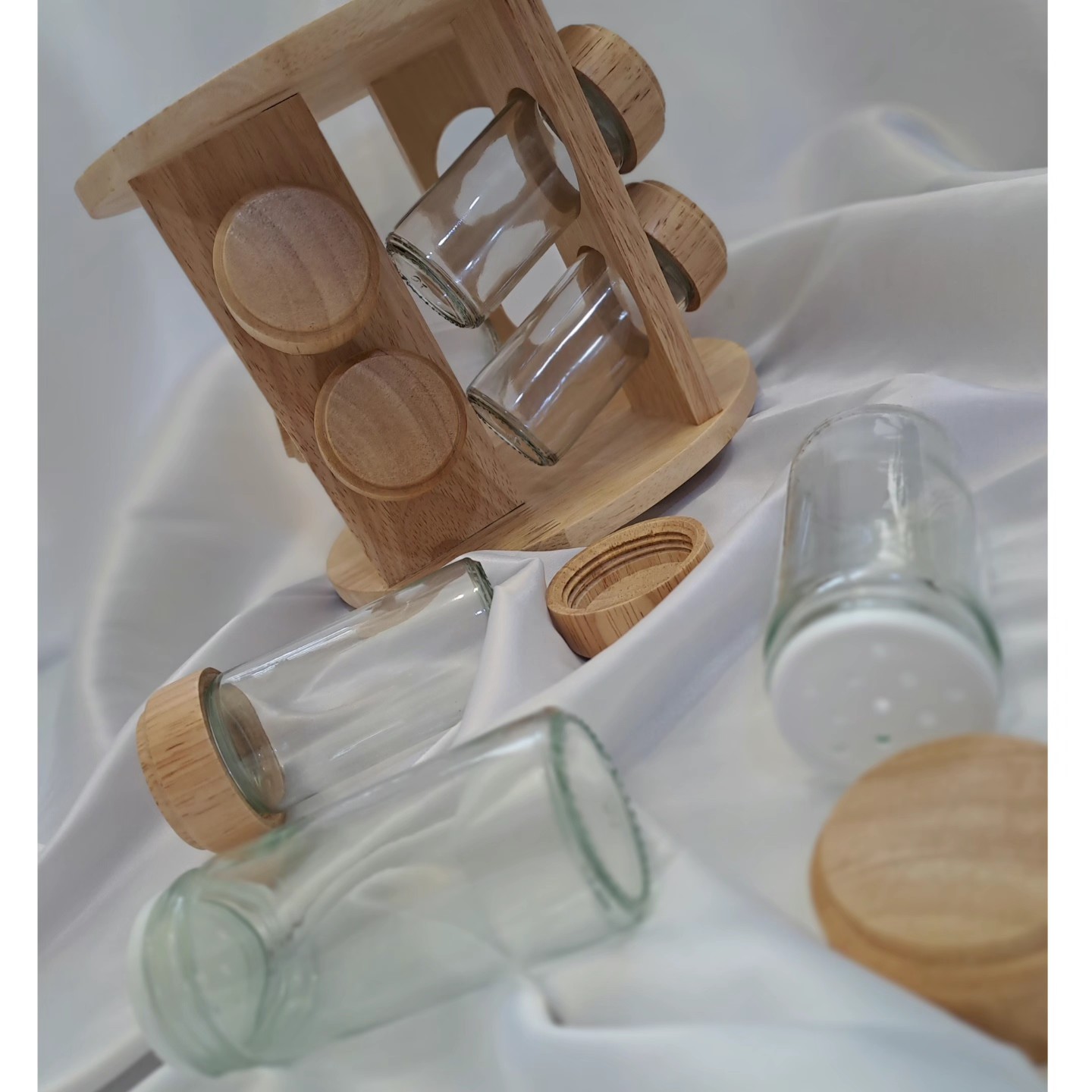 جا ادویه چوب بامبو و شیشه کار کارداتی و با کیفیتی هست 8 عددی هست حالت گردونه داره و میچرخه مبلمونسرا مدل 292575