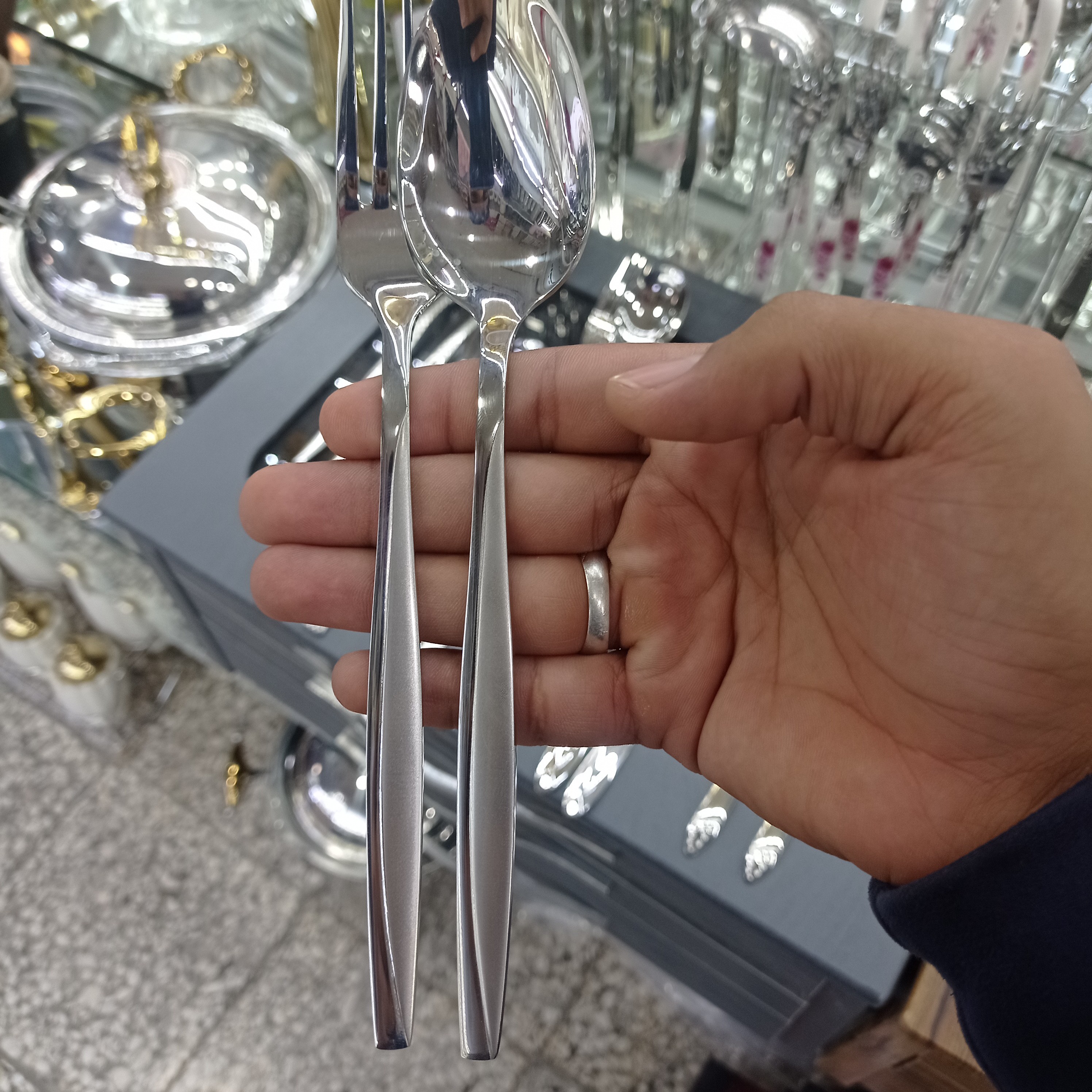 سرویس قاشق چنگال یونیک استیل نگیر 4میل 144پارچه 3میل هم موجوده 200تومن ارزون تر هستش اقلام به صورت زیر می باشد 24 قاشق 24 چنگال 12 شربت 12 مربا 12 چایخوری 12 کارد و 12 چنگال میوه 4 کفگیر 4 ملاقه بزرگ 2 ملاقه کوچک 1 قاشق خورشت 6 قاشق عسل 3 قاشق سوپ ا انبر سالاد ا انبرکیک ا پالت کیک ا چنگال مرغ