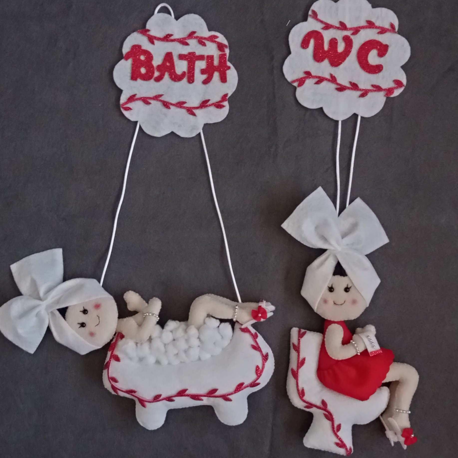 جنسشون نمدی است طول نشانگر حمام ۲۰ سانت و ارتفاع عروسک نشانگر سرویس بهداشتی ۲۰ سانت است هر رنگی مدنظرتون باشه قابل اجراست قیمت برای هردوتاست