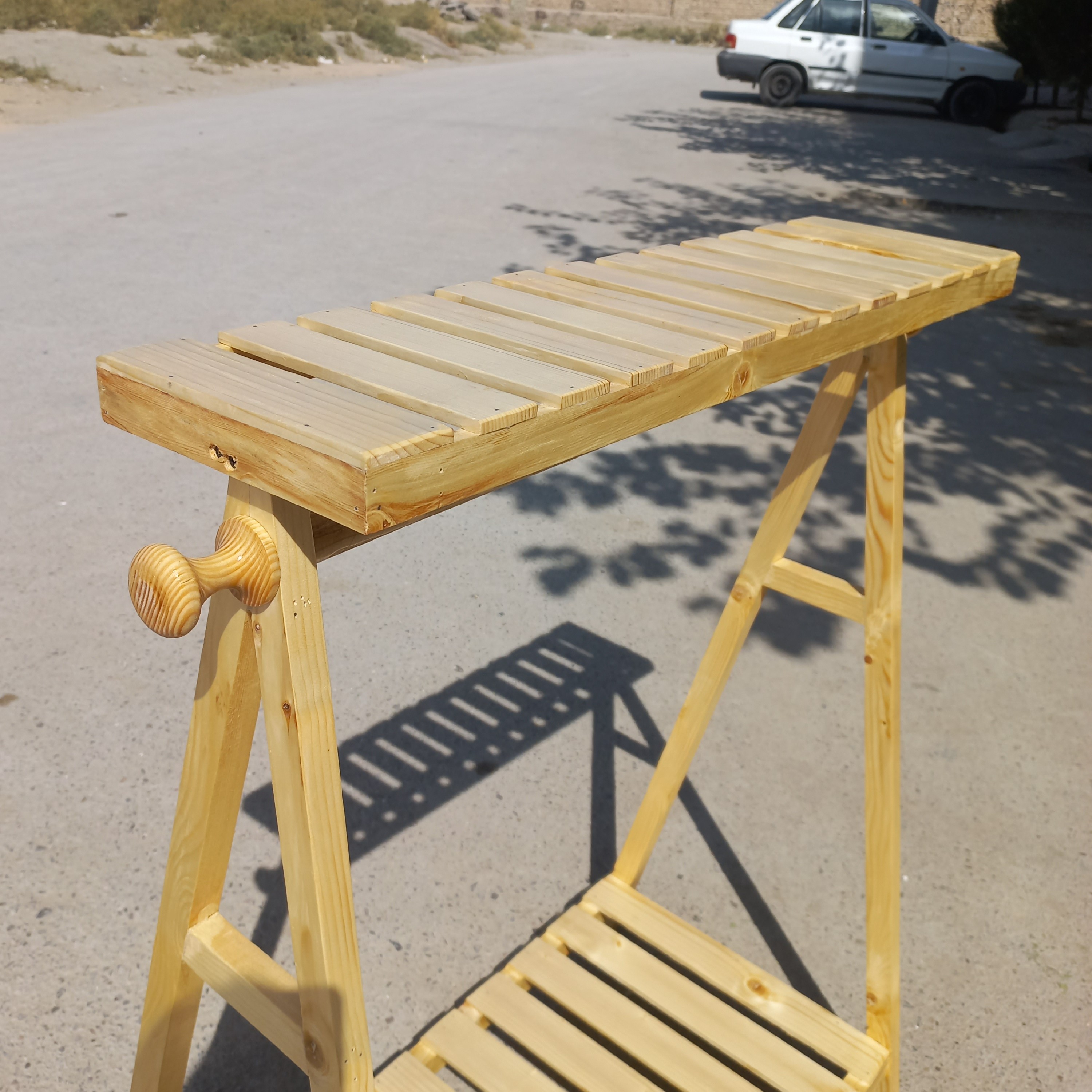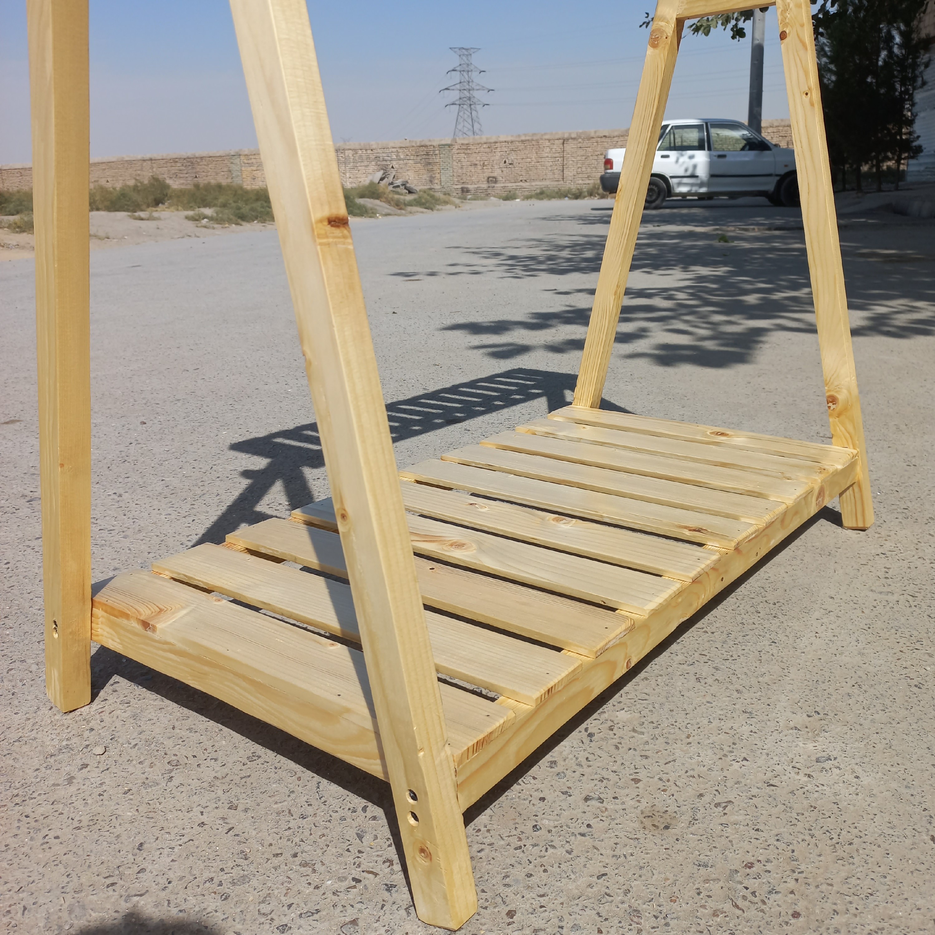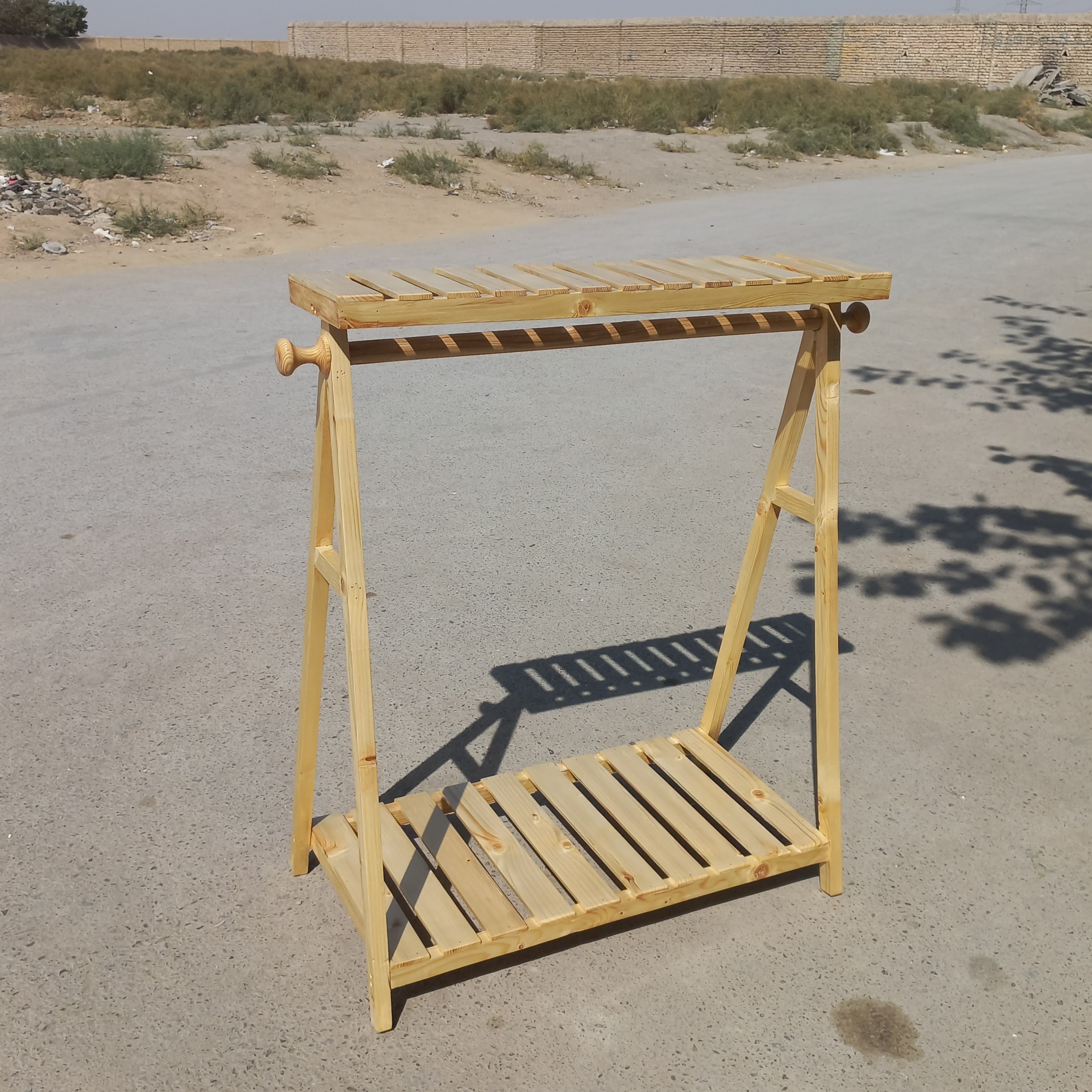 رگال لباس چوبی کودک مدل یک طبقه تاجدار گوشواره دار در ابعاد ارتفاع ۱۰۰ و طول ۸۰ در رنگ کرم روشن ، جلا بر روی چوب قابل سفارش در نگ های قهوه های تیره و روشن ارسال با چاپار به سراسر کشور رایگان می باشد