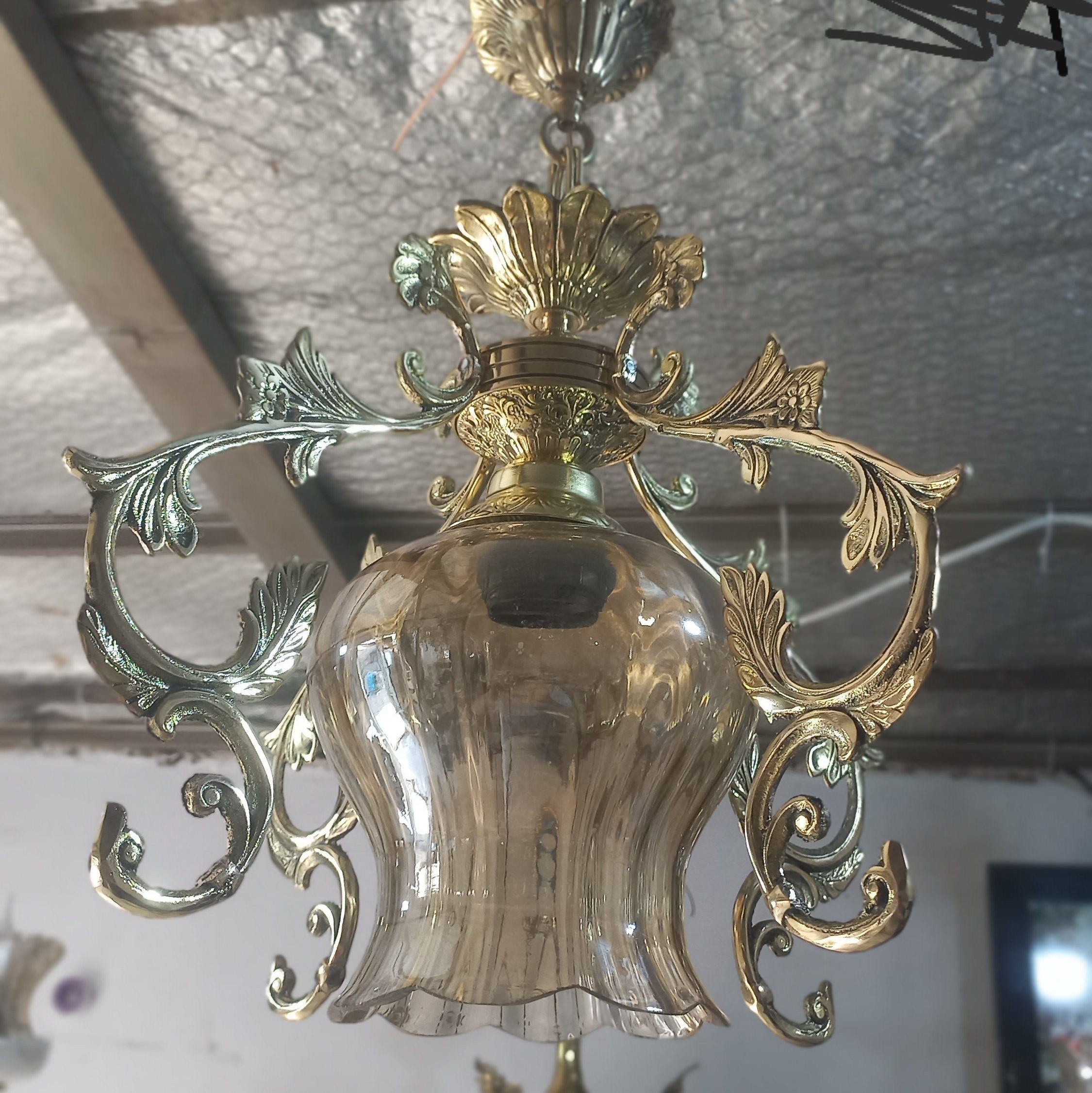 لوستر تمام برنج. تک شعله . ارتفاع 55 دور لبه لاله شیشهای 14 دور شاخه 30 سانتیمتر لاله واژگون. لاله شامپاین . . رنگ طلایی . مناسب آشپزخانه . راه رو . و اتاق خواب