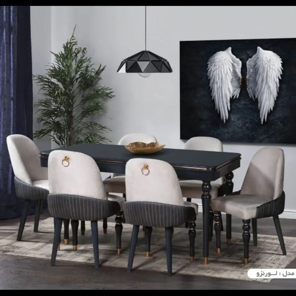 میز ناهارخوری استیل فورتیک 6 نفره مدل مروارید سفید مشکی برند کارما ارسال باربری و مبلمونسرا مدل 216749