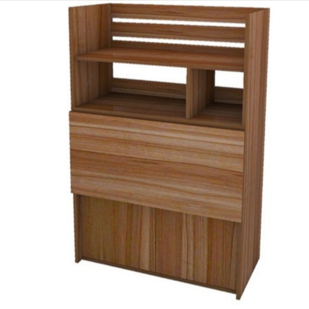 این میز مناسب برای استفاده به عنوان میز تحریر میز کار و میز کامپیوتر میباشد دارای کتابخانه در چهار قفسه بزرگ و جادار وهمچنین شلف طاقچه ای جهت جاگذاری دکوری و مجسمه بسیار شیک کمجا و کاربردی