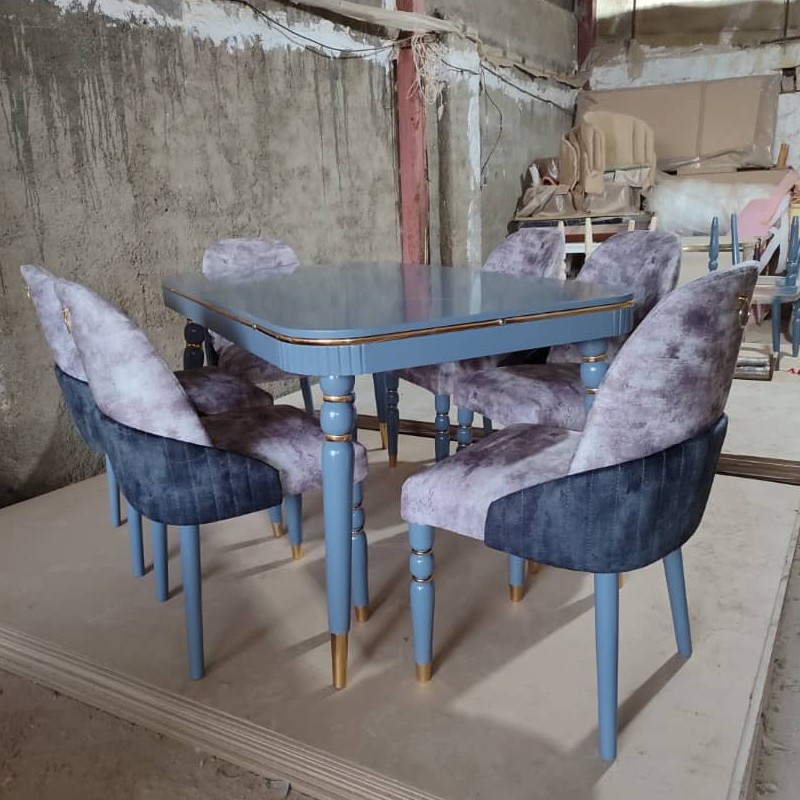 میز ناهارخوری چوبی 4 نفره مدل هانزو رنگ طوسی فیروزه ای ارسال باربری و برند کارما مبلمونسرا مدل 216558