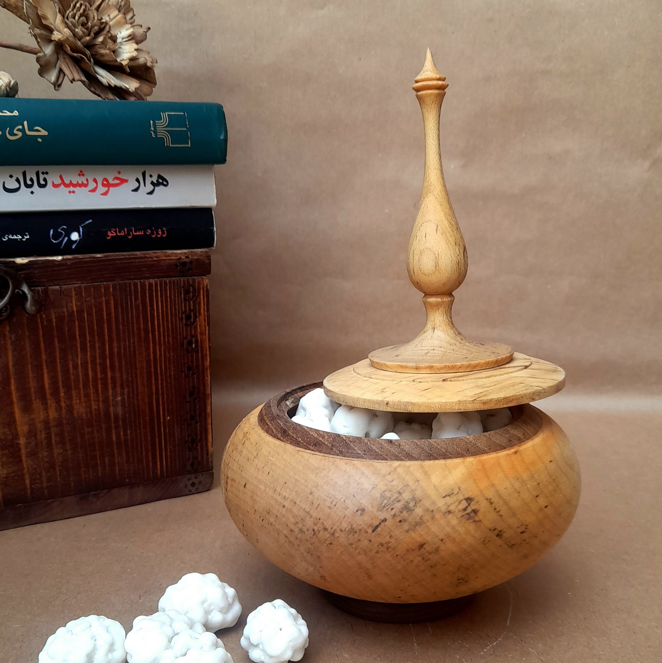قطر محصول ۱۳ سانتیمتر و ارتفاع با دسته ۱۸ سانتیمتره. برای نقل و شکلات هم مناسبه. از چوب درجه یک و باکیفیت ساخته و با روغن گیاهی پوشش دهی شده که کاملا آبگریز و بهداشتیه