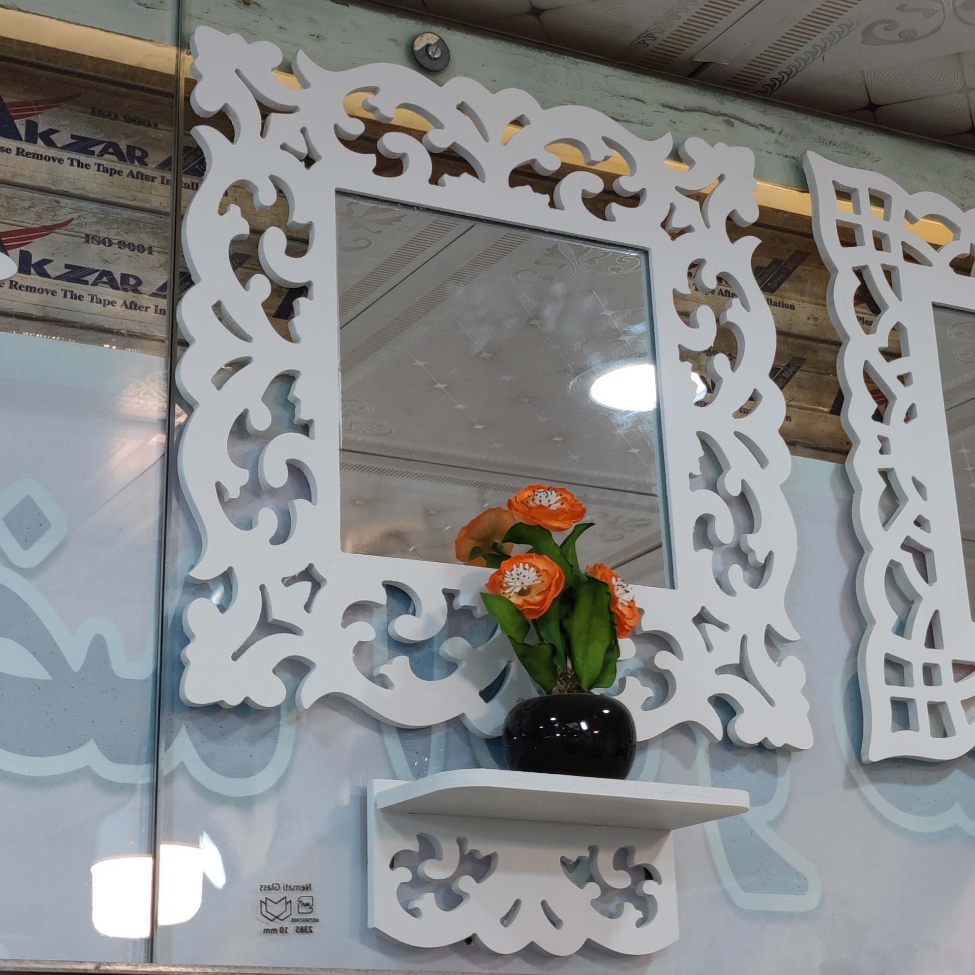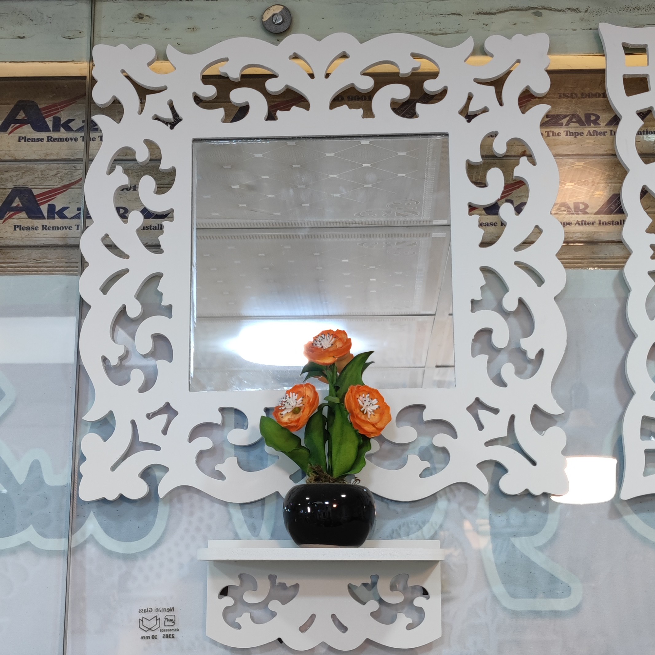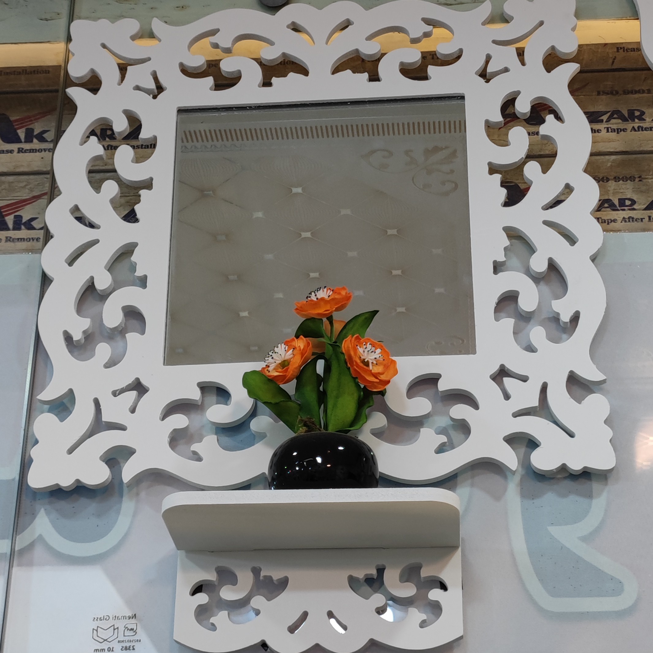آینه کنسول سایز کوچک طرح لاله یکی از طرح های پر نقش و نگار و خوش فرم مناسب انواع سلیقه ها کاملاً ضدآب مناسب برای حمام توالت و بالای روشویی و آشپزخانه و اتاق خواب