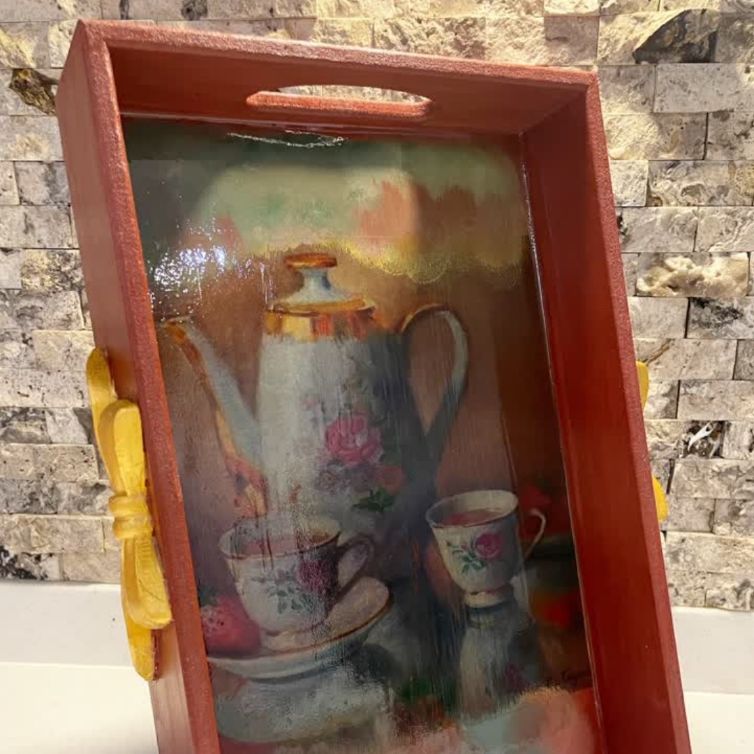 جنس کار از چوب ام دی اف و کف سینی هم رزین خورده.قابل سفارش به رنگ دلخواه مشتری