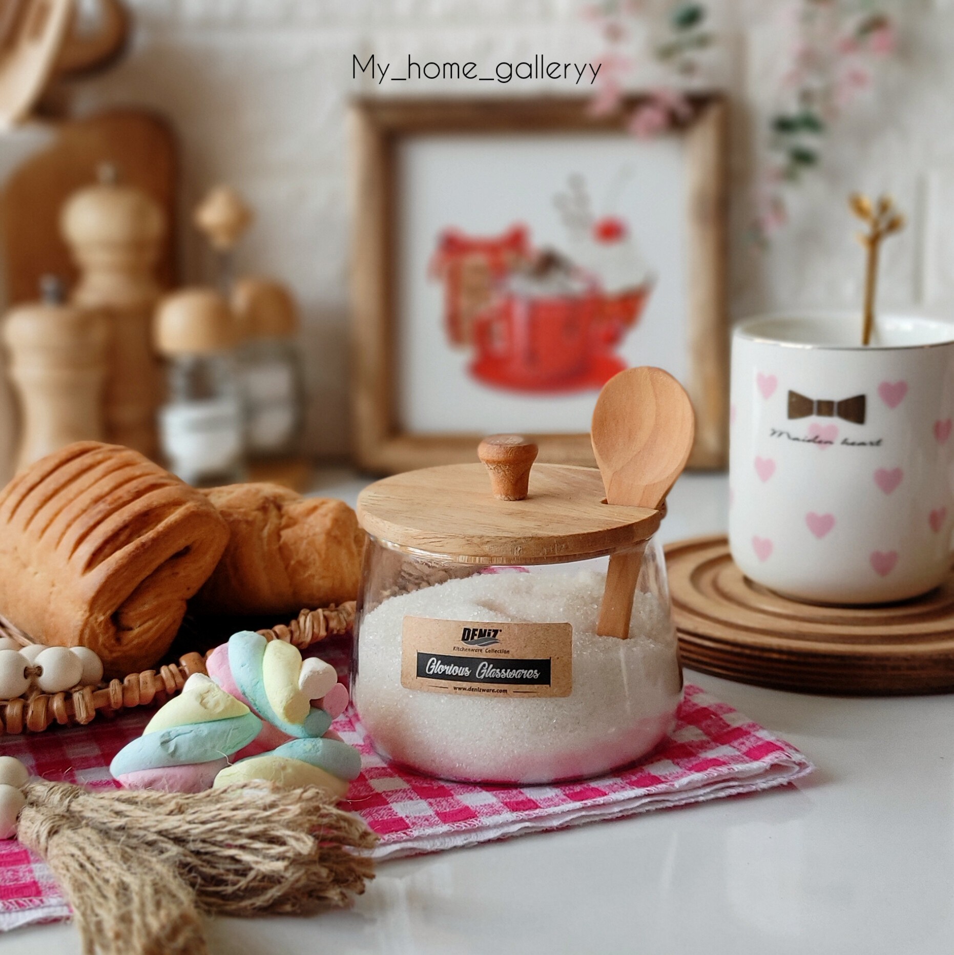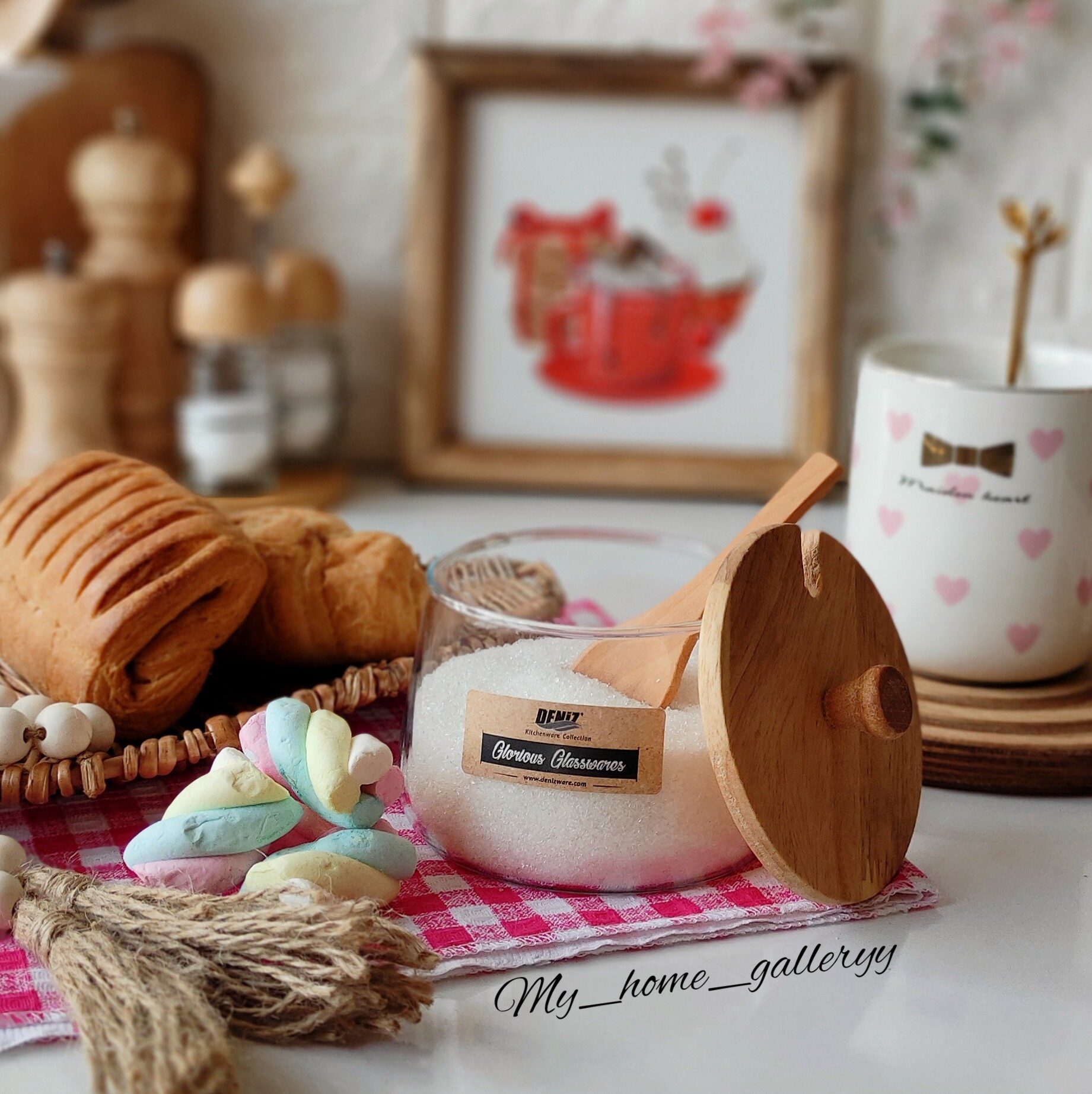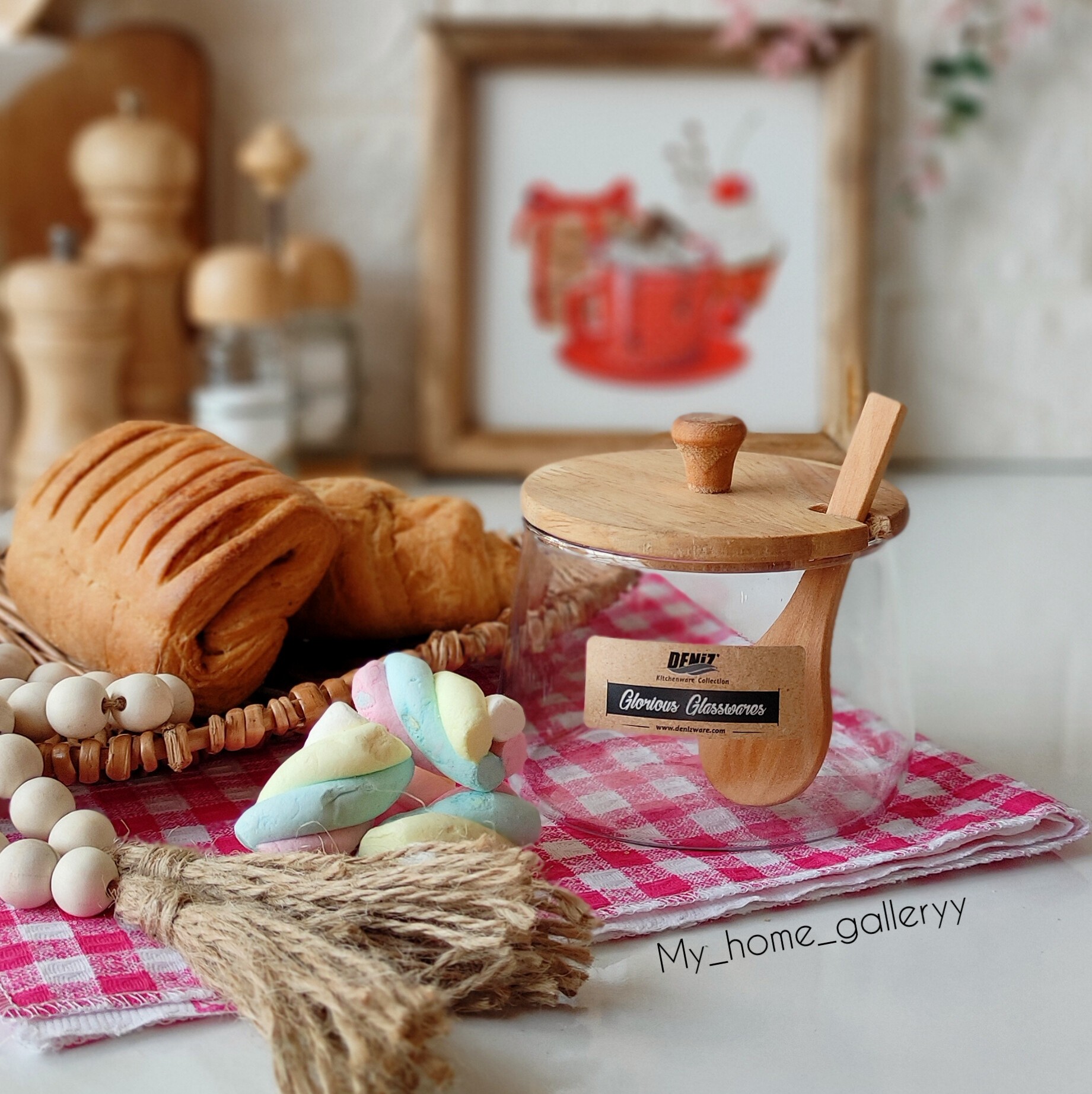 جاشکری پیرکس درب چوبی ، مرباخوری ، جاادویه ، بانکه قاشق دار درب چوبی برند دنیز مبلمونسرا مدل 293120