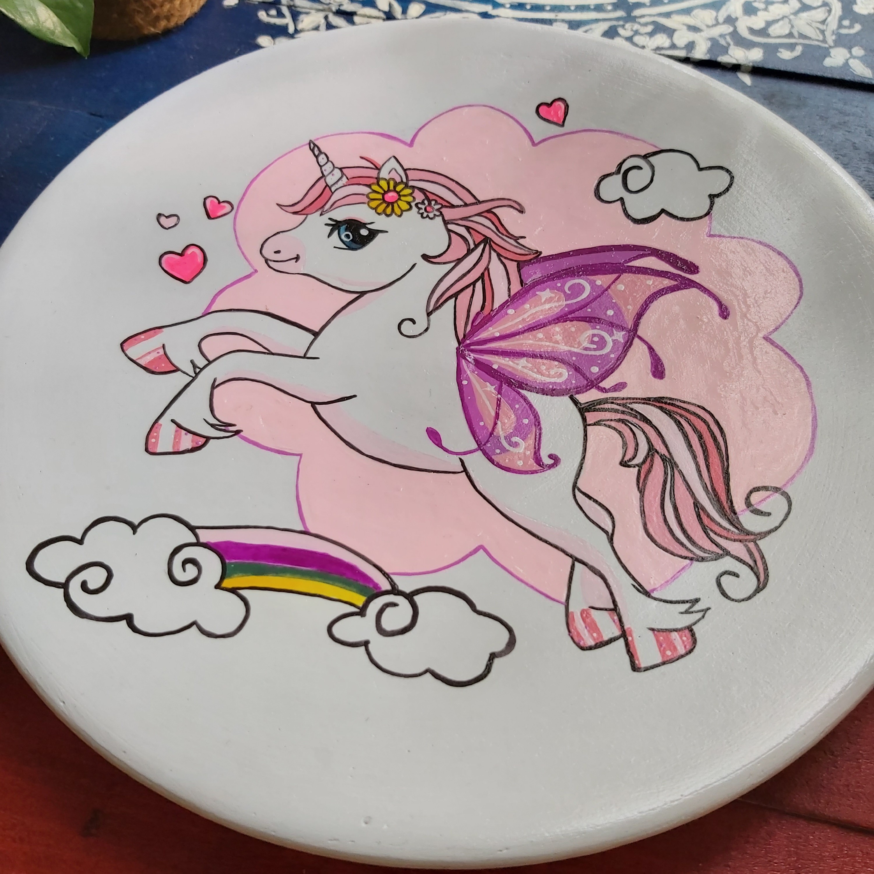 بشقاب دیوارکوب اسب شاخدار قطر 25سانتیمتر طراحی شده با دست و رنگ اکریلیک قابل نصب آسان و شستشو با اسکاج نرم مبلمونسرا مدل 259031
