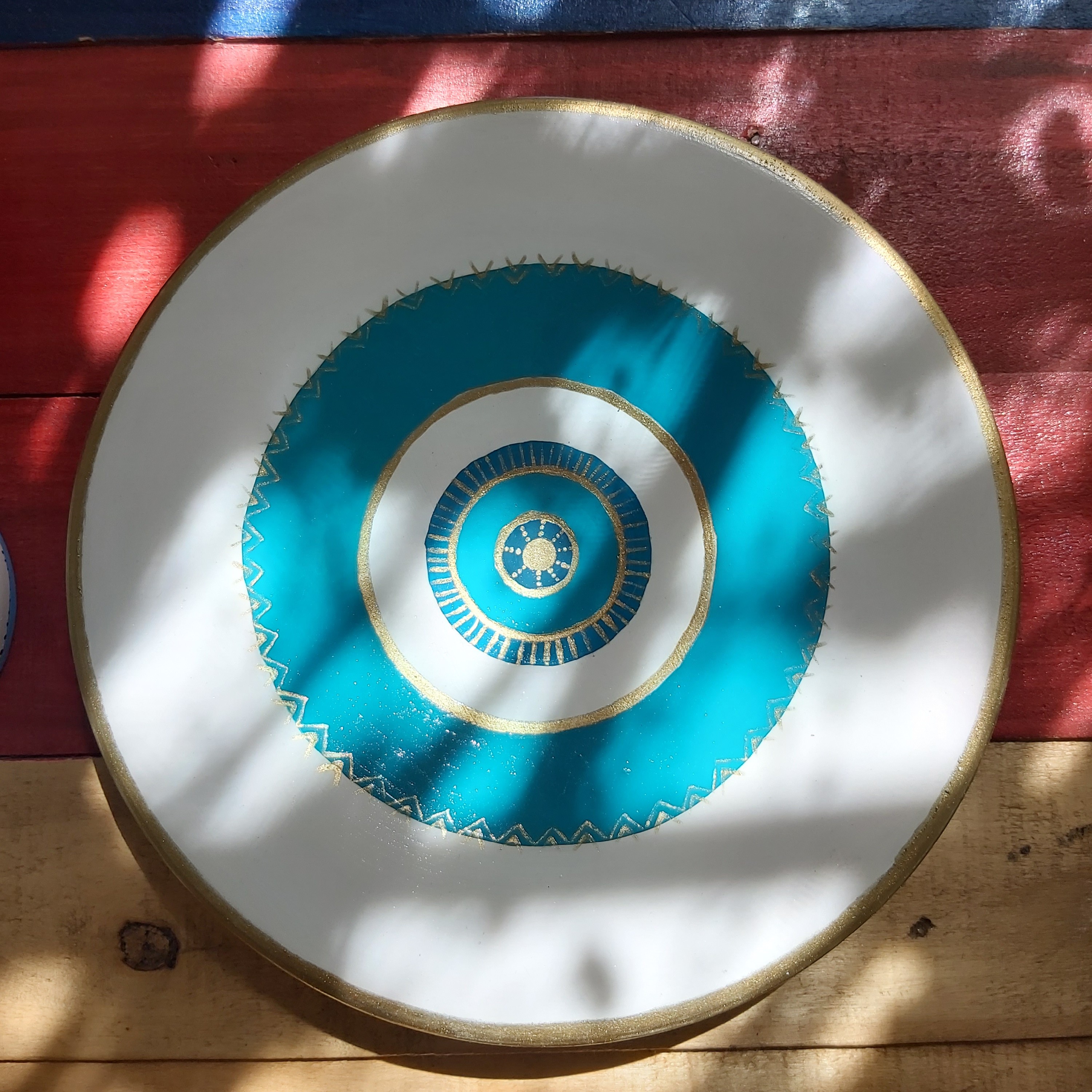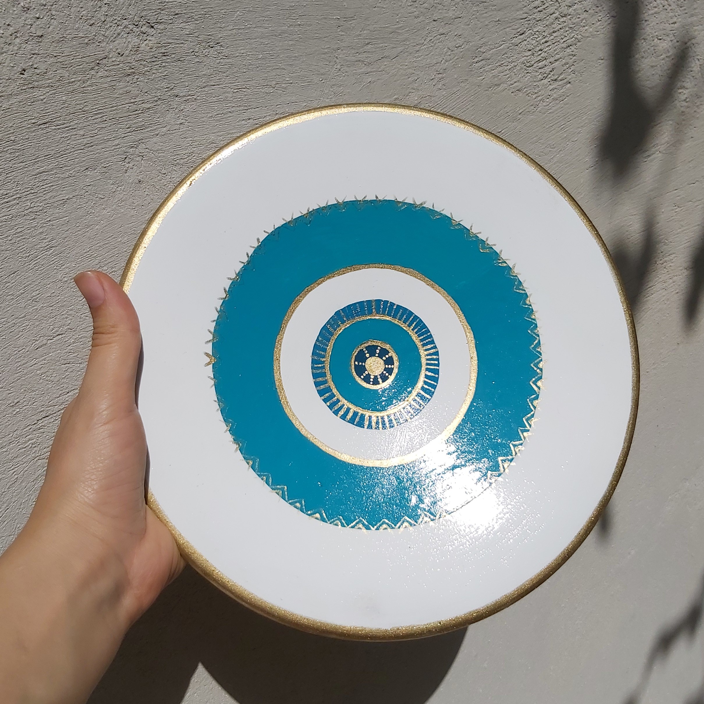 بشقاب دیوارکوب چشم نظر قطر 25سانتیمتر طراحی شده با دست و رنگ اکریلیک قابل نصب آسان و شستشو با اسکاج نرم مبلمونسرا مدل 259121