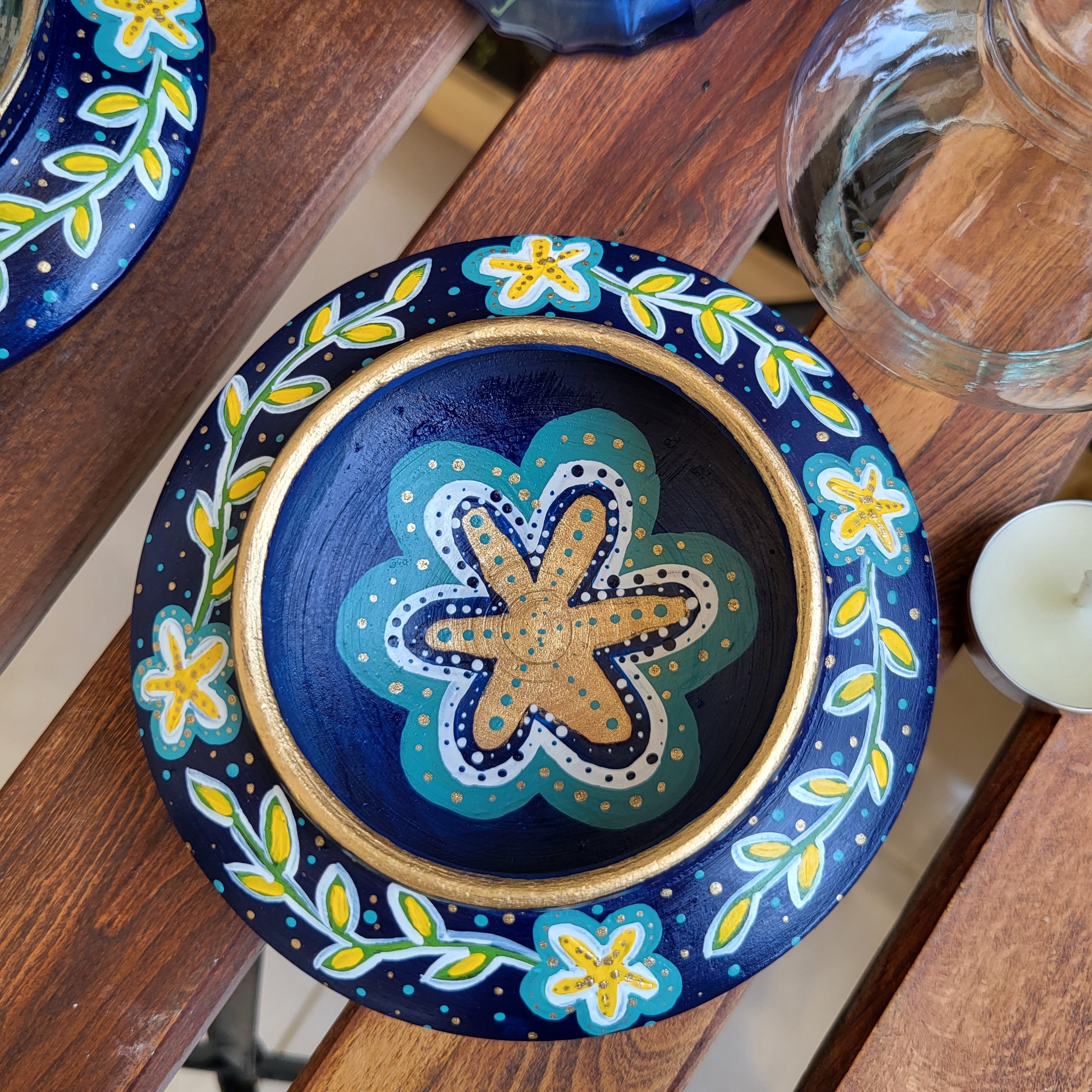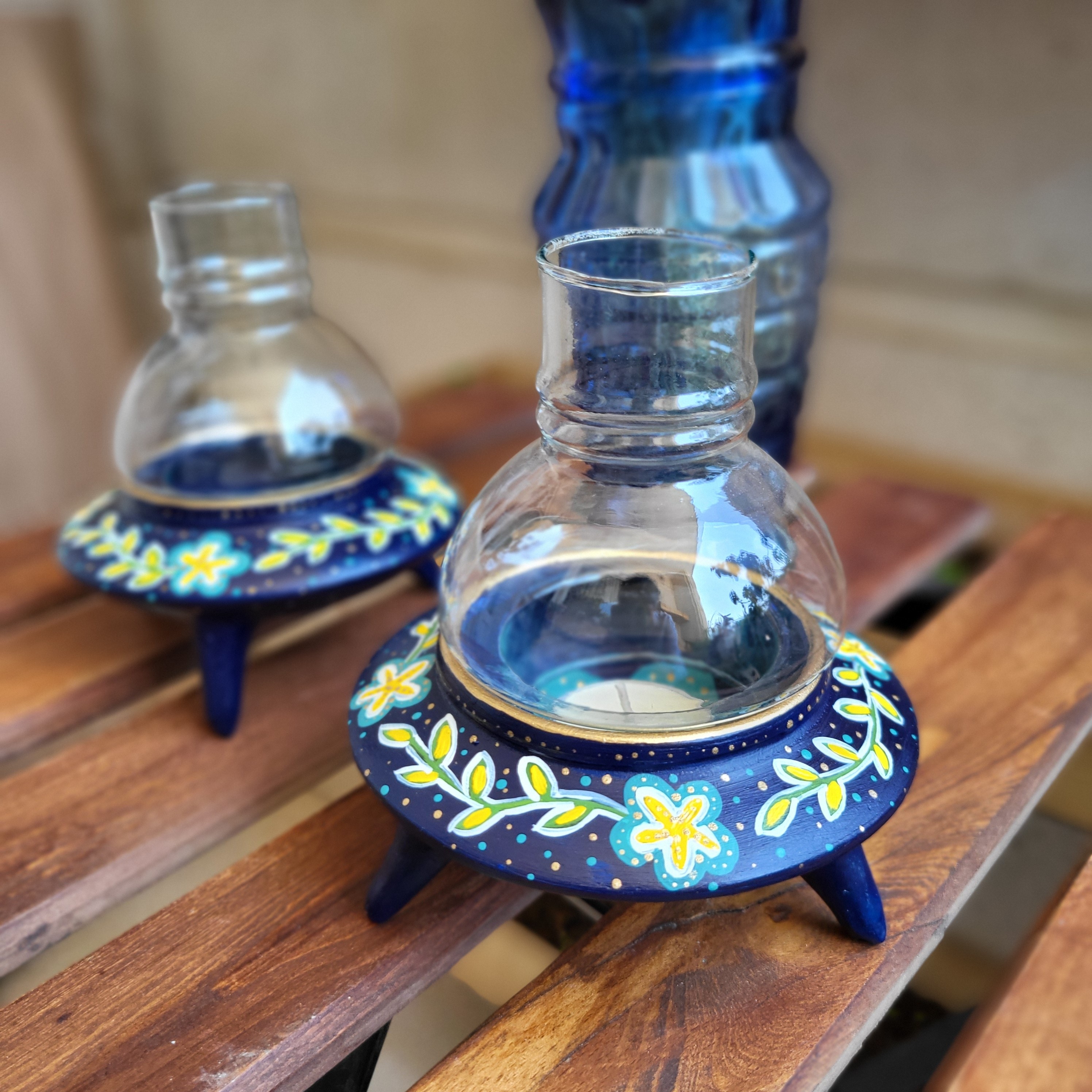 جا شمعی عدسی شیشه دار طراحی شده با دست و رنگ اکریلیک و قابل شستشو با اسکاج نرم و آب سرد مبلمونسرا مدل 284135