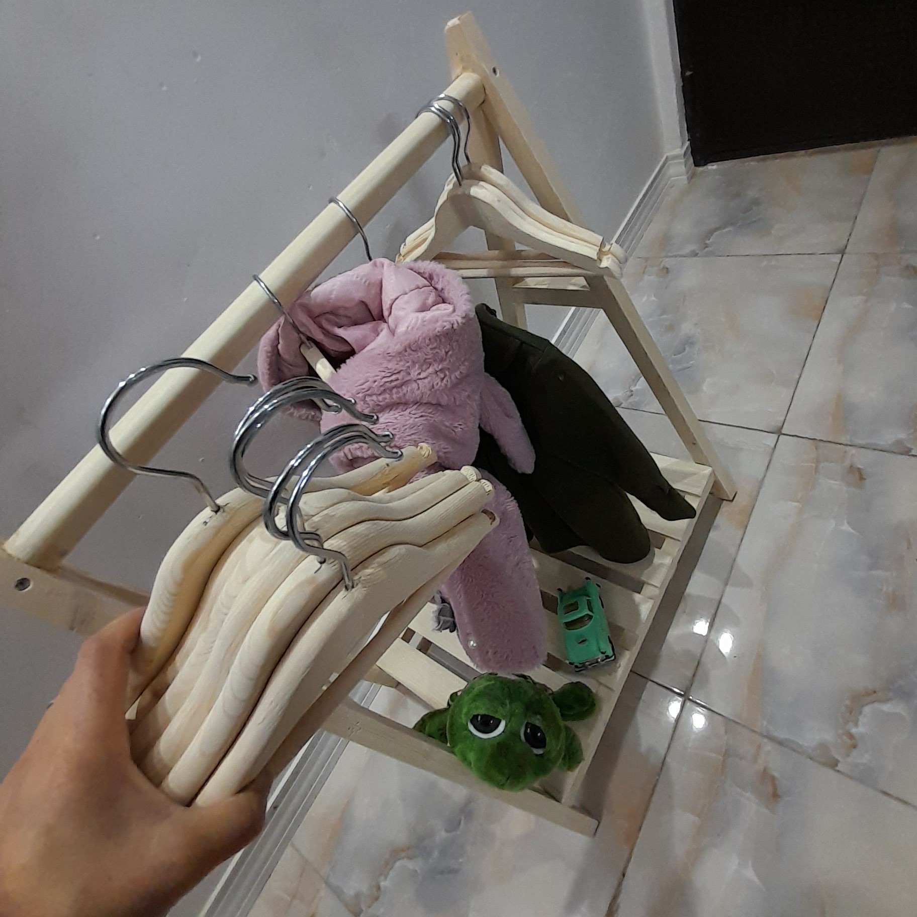 رگال لباس چوبی کودک به همراه 12عدد چوب لباسی مبلمونسرا مدل 232434