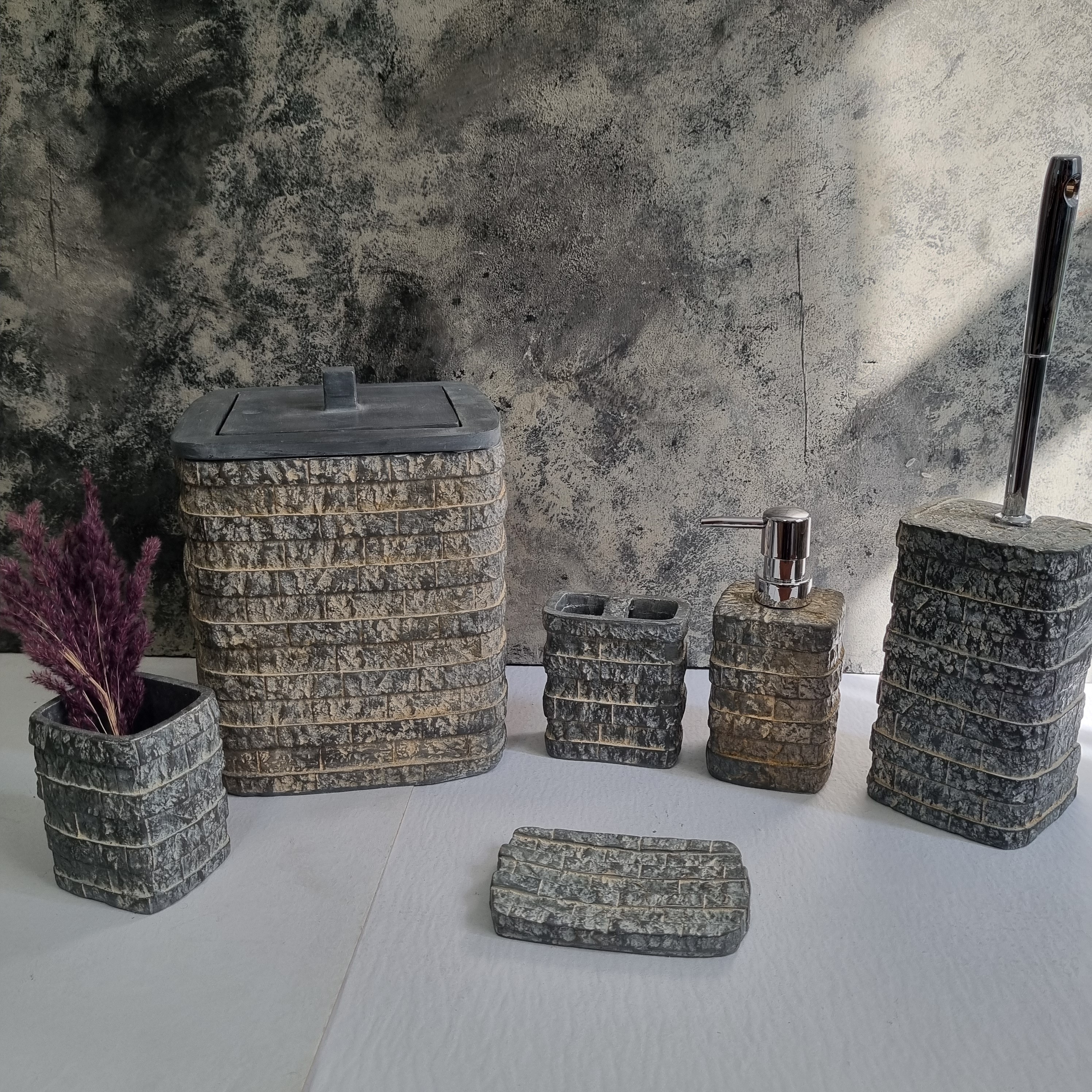 سرویس دستشویی زیبا 🧼 ، ضدآب، 6پارچه همراه فرچه و پمپ مایع دستشویی ،جنس پلیستر ،پتبنه و رنگ کار دست ،تک رنگ و تک نسخه ،یک لایه رزین سنگ جهت مقاومت در برابر رطوبت زدم. ولی با مواد شوینده اسیدی نباید شسته بشه،