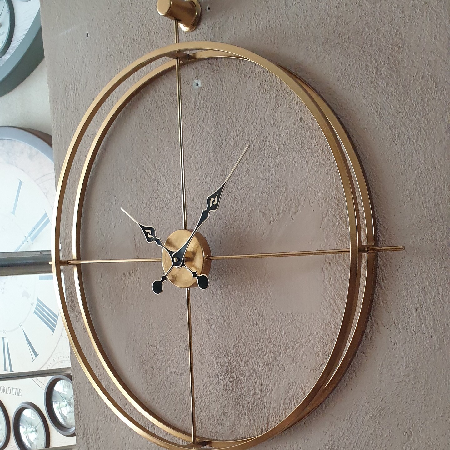 ساعت دیواری فلزی مدرن برند آکیا طلایی رنگ ثابت مبلمونسرا مدل 237173