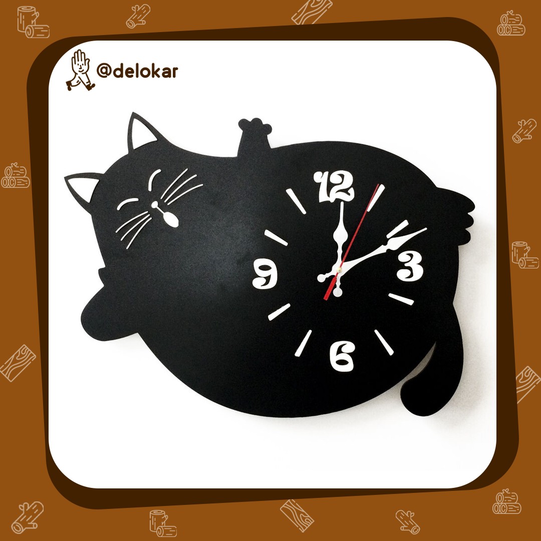 ساعت دیواری چوبی کودک مدل گربه سیاه رنگ سیاه سایز 50 در 80 مبلمونسرا مدل 237410