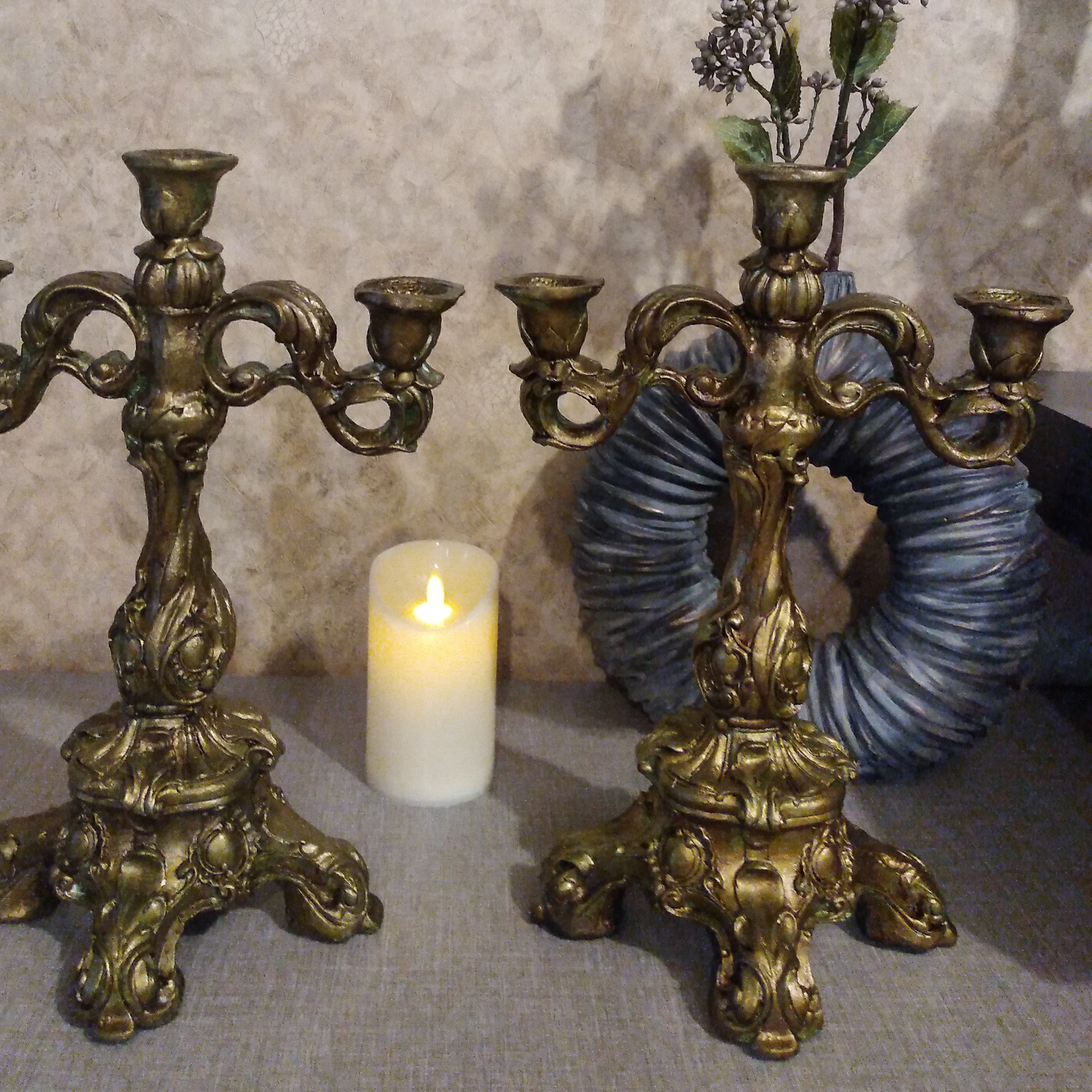 ست دوتایی شمعدان رومیزی پلیاستر پتینه شده