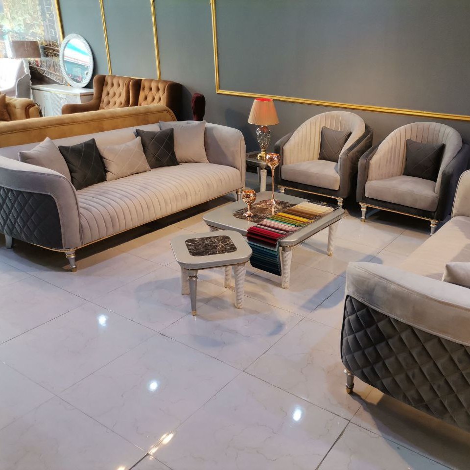 مبل راحتی ۸نفره مدل روبرتو شامل ۳+۳+۱+۱ نفره رنگ بندی چوب نقرهای ،بژ،طلایی،فندقی روشن و تیره ،طوسی،مشکی،سفیدونوک مدادی رنگ بندی پارچه ۷۵ رنگ مختلف دارد خدمات پس از فروش سه سال
