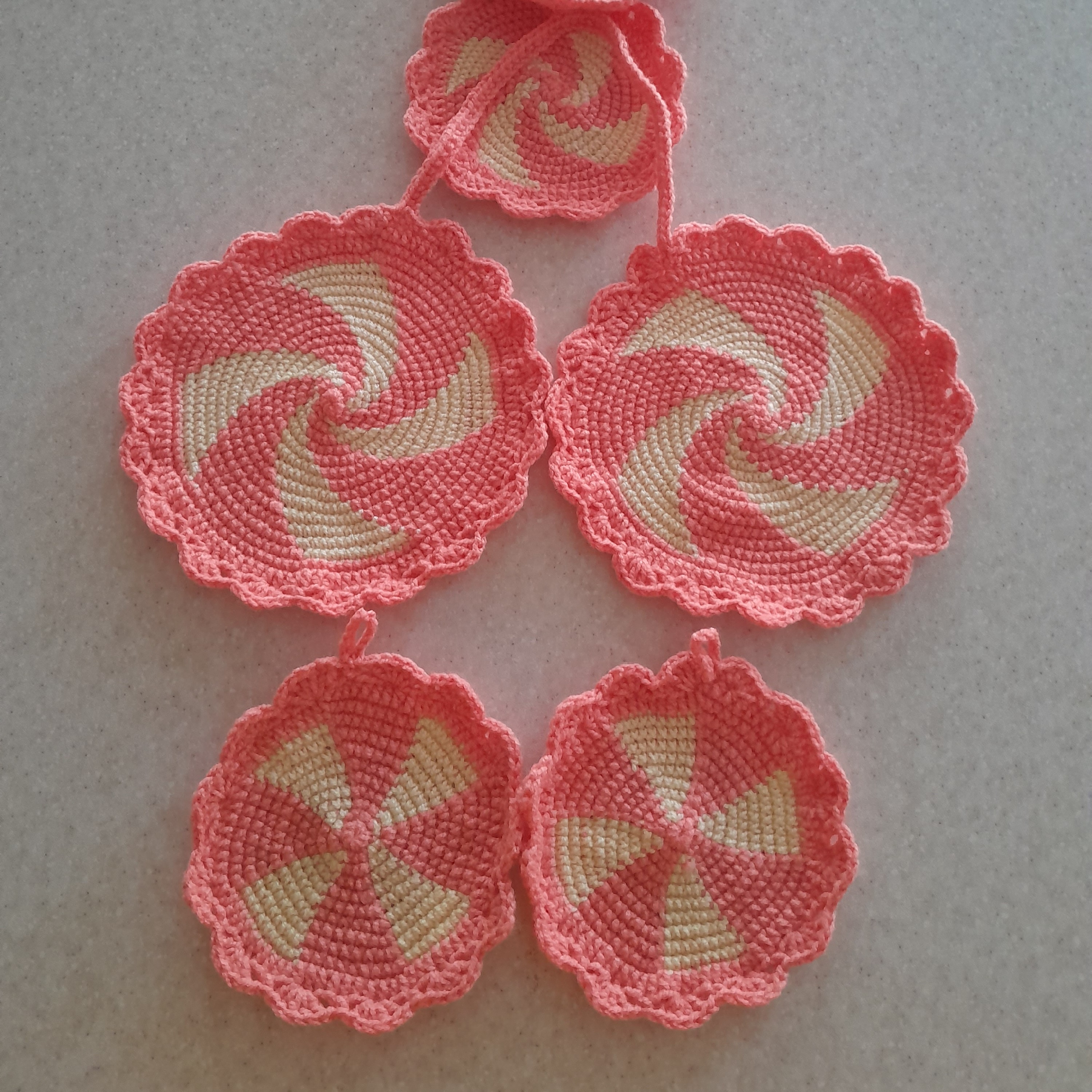 ست زیر لیوانی و دستگیره آشپزخانه بافتنی طرح فرفره ای. بافته شده با بهترین متریال ایرانی. دارای رنگبندی متنوع