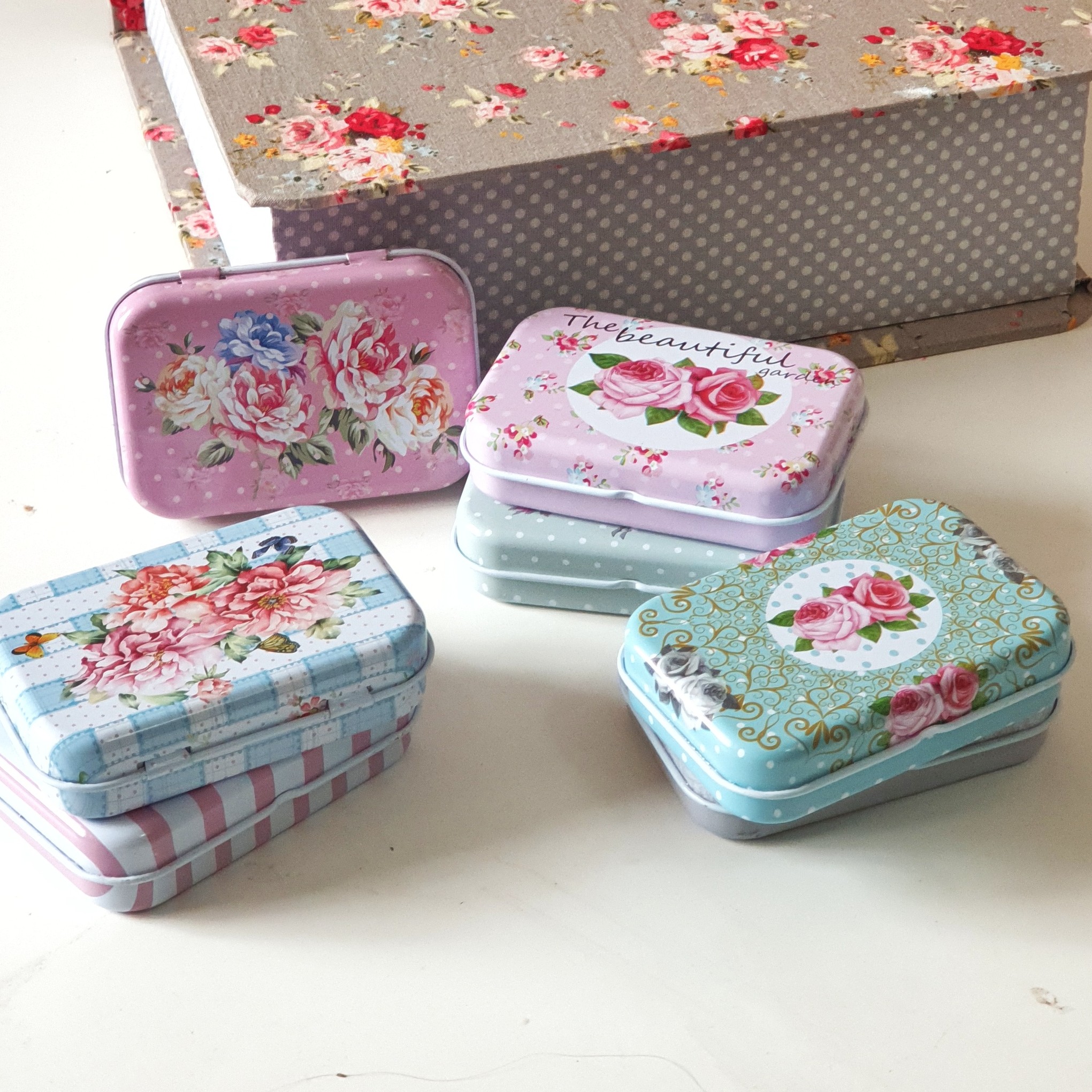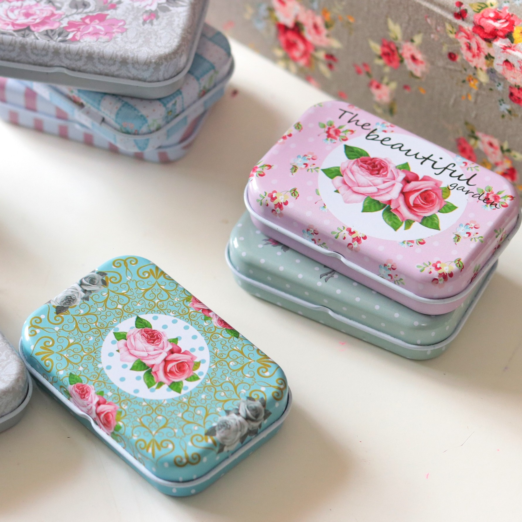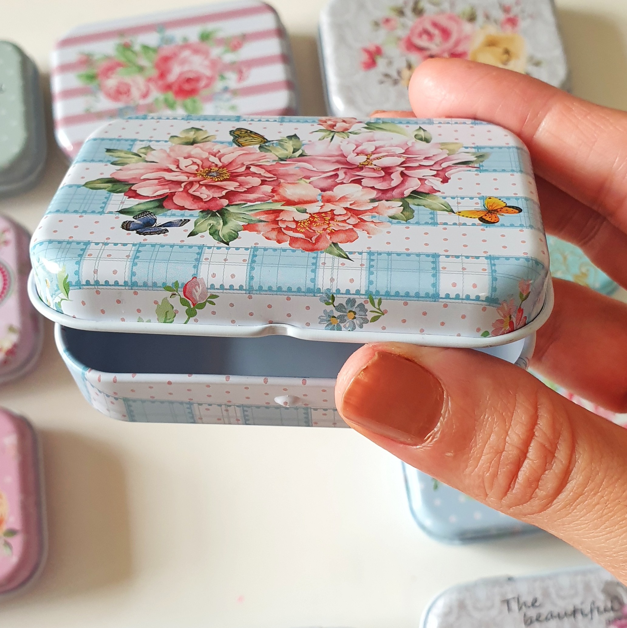 قوطی فلزی گلگلی درب لولایی ابعاد ۷/۵ در ۴/۵ در ۲/۵ مناسب قرص،آدامس،بذر گیاهان،پونز و سوزن و.... جذاب و باکیفیت