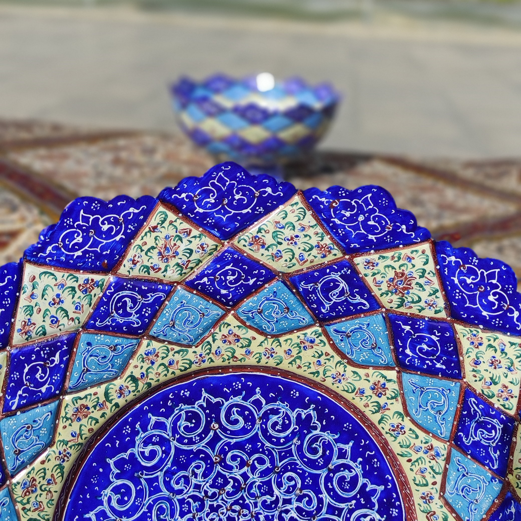 کاسه و بشقاب سایز ۳۰میناکاری قطر بشقاب ۳۰ سانتی متر قطر دهانه ۲۵سانتی متر