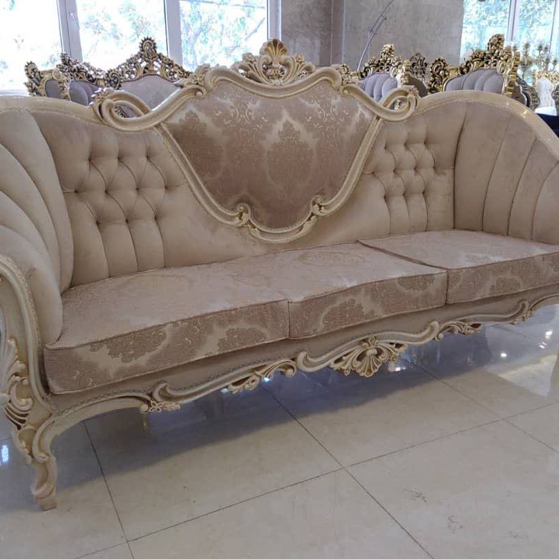 مبل استیل نگین ۹ نفره با دو عدد عسلی ویک عدد جلو مبلی ۷نفره وبا دو عدد تکی میزبان چوب تمام راش ،نشیمنش فوم سرد وابر ۳۰ کیلویی در سایر قسمت ها