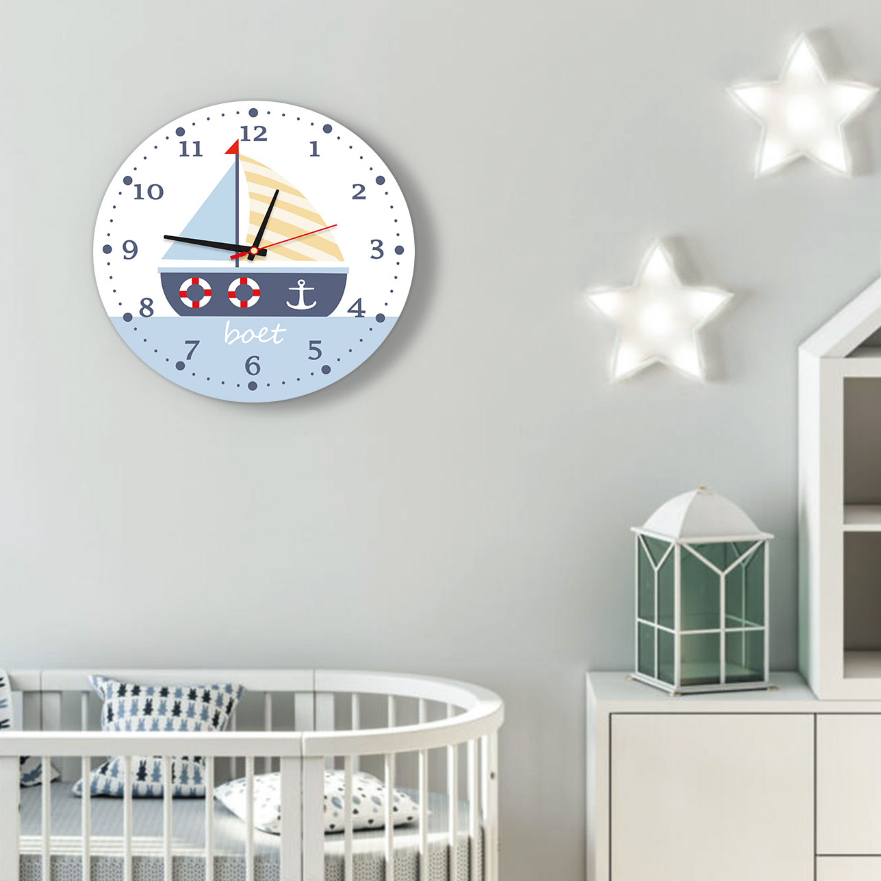 ساعت دیواری فانتزی اتاق کودک مدل قایق مان لیزر مبلمونسرا مدل 237017