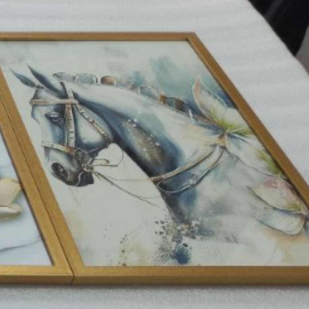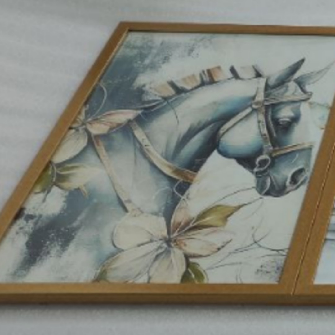 تابلو دکوراتیو فانتزی طرح اسب وگل سفید وطلایی سه تکه مبلمونسرا مدل 267373