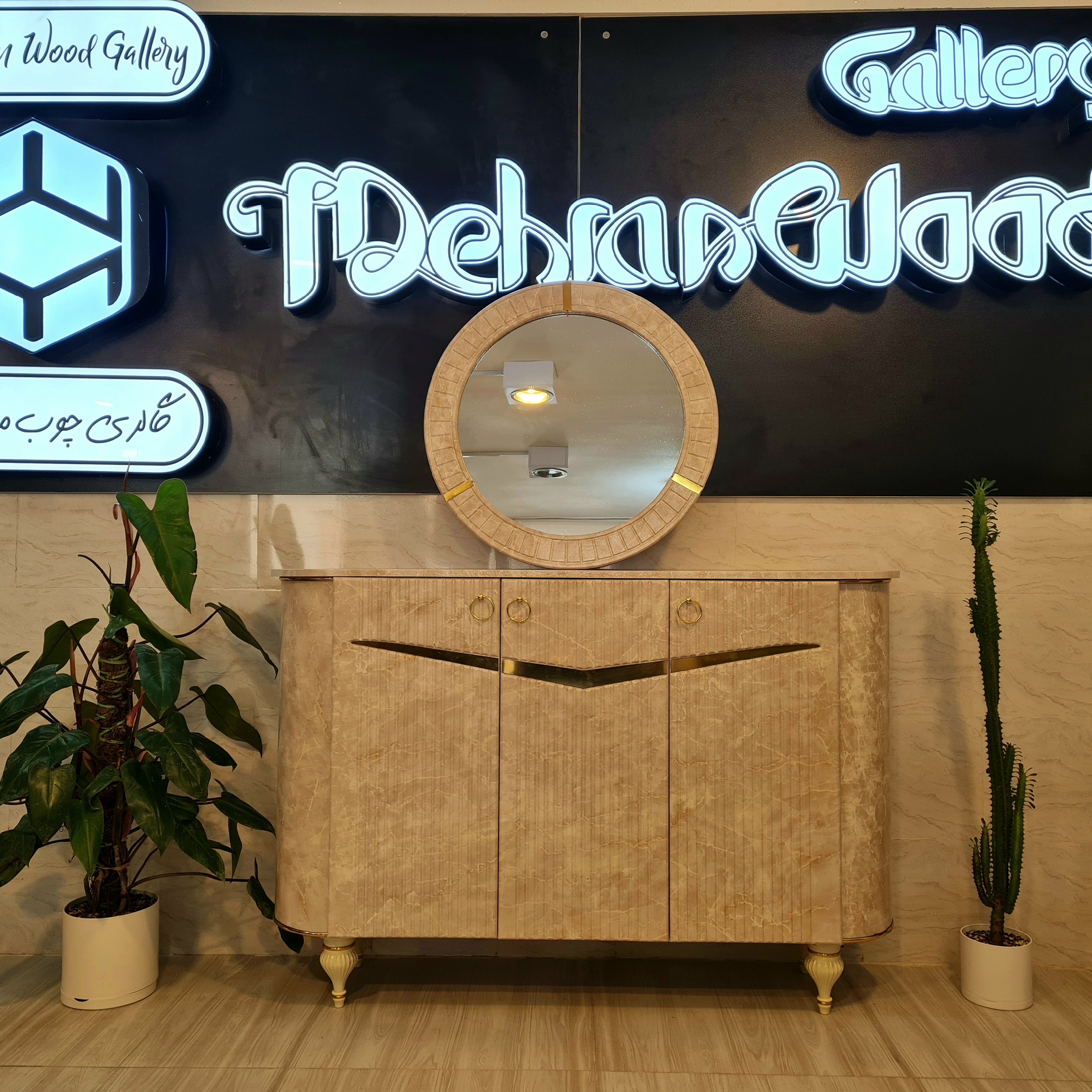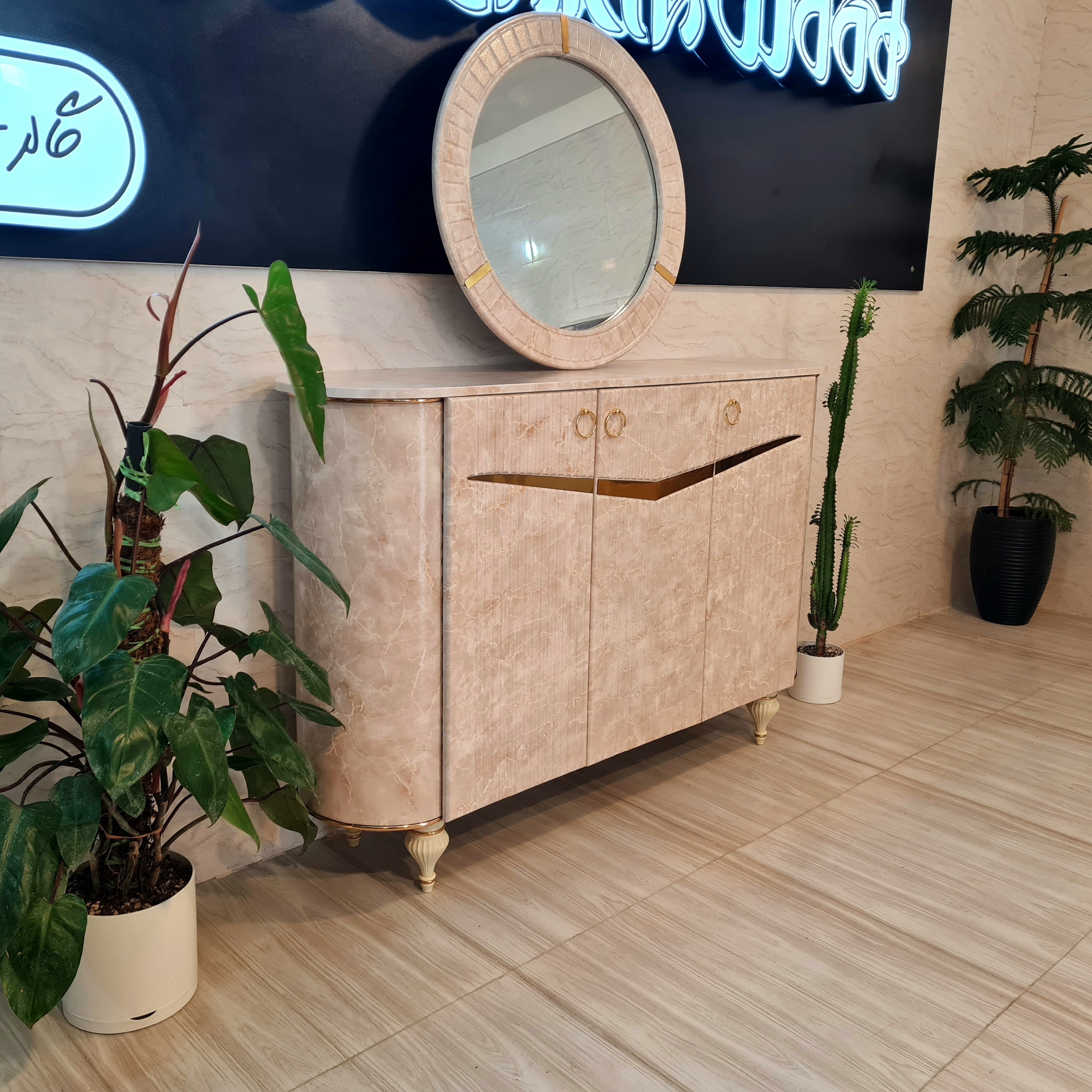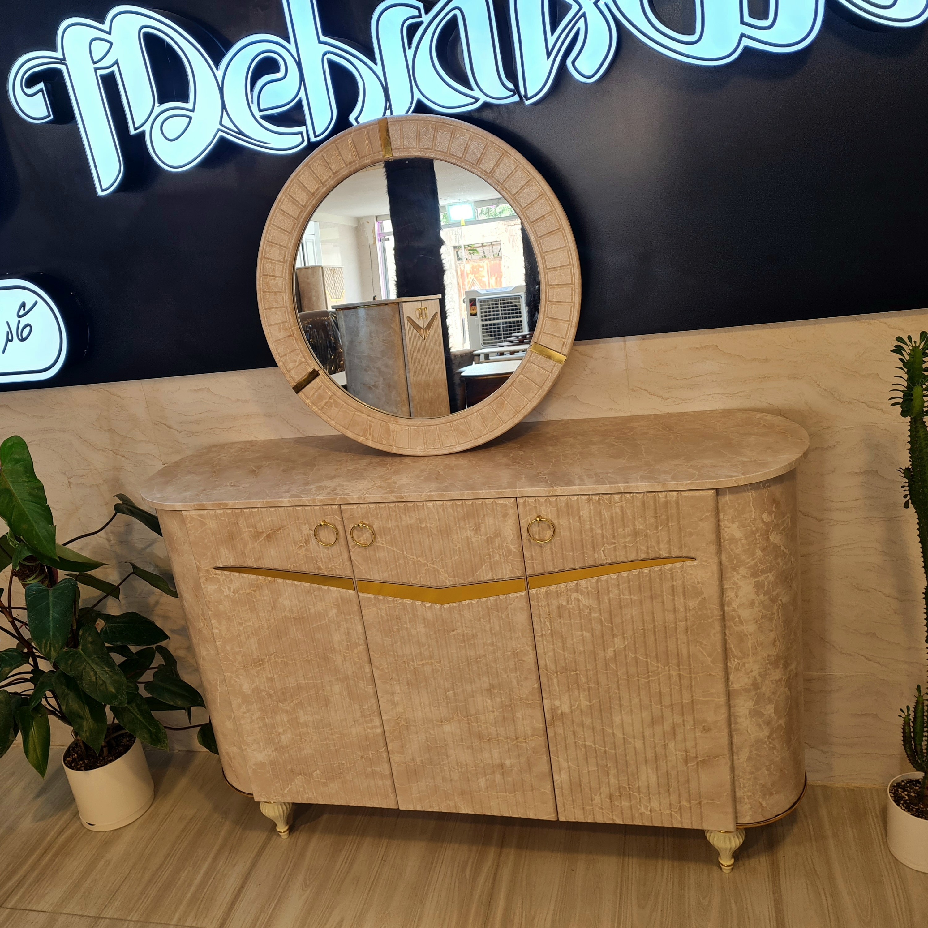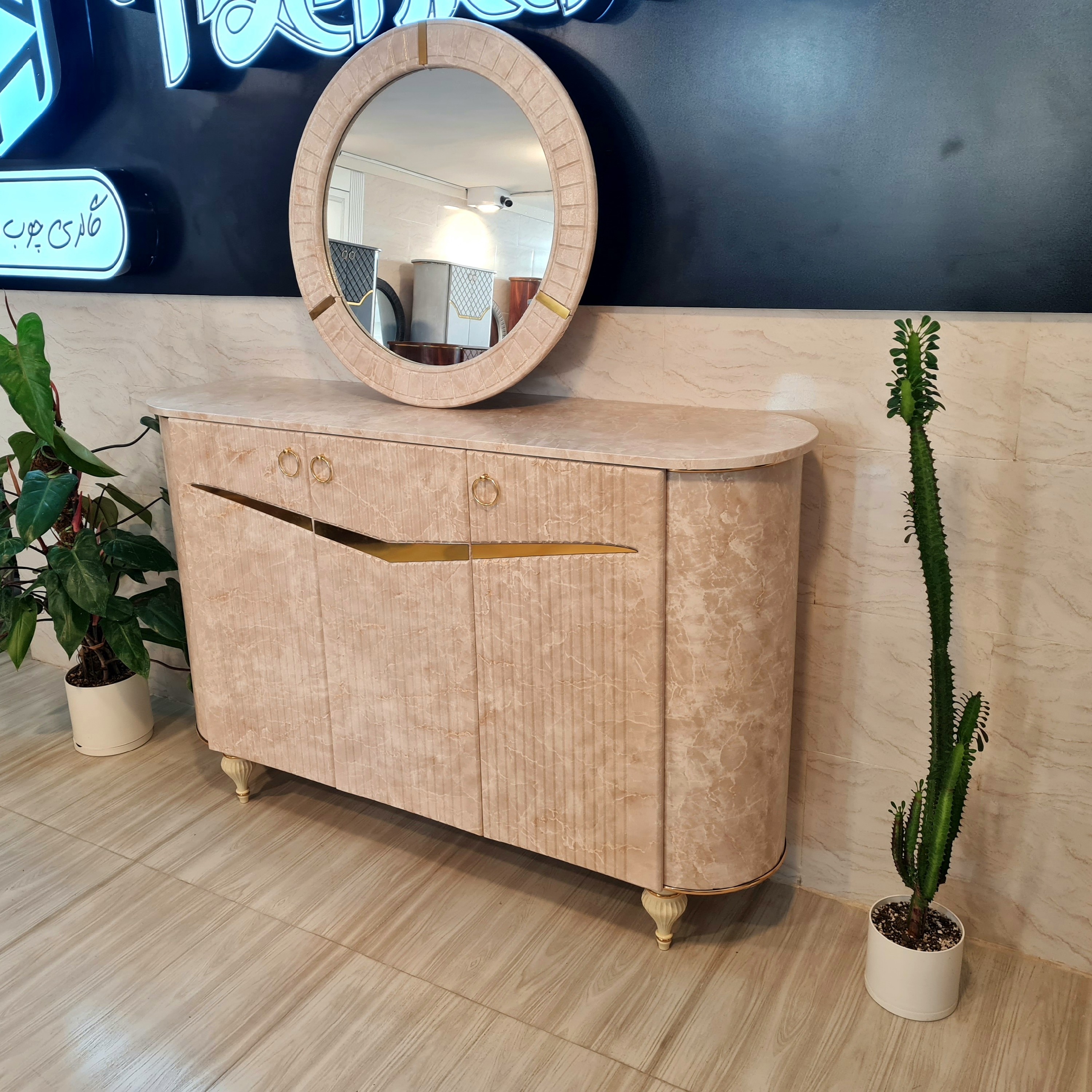 آینه و کنسول کرم طرح سنگ آیینه کنسول کار شرکتی با کیفیت تمام وکیوم FRP ارسال به صورت طرح کرکره ای مبلمونسرا مدل 222573
