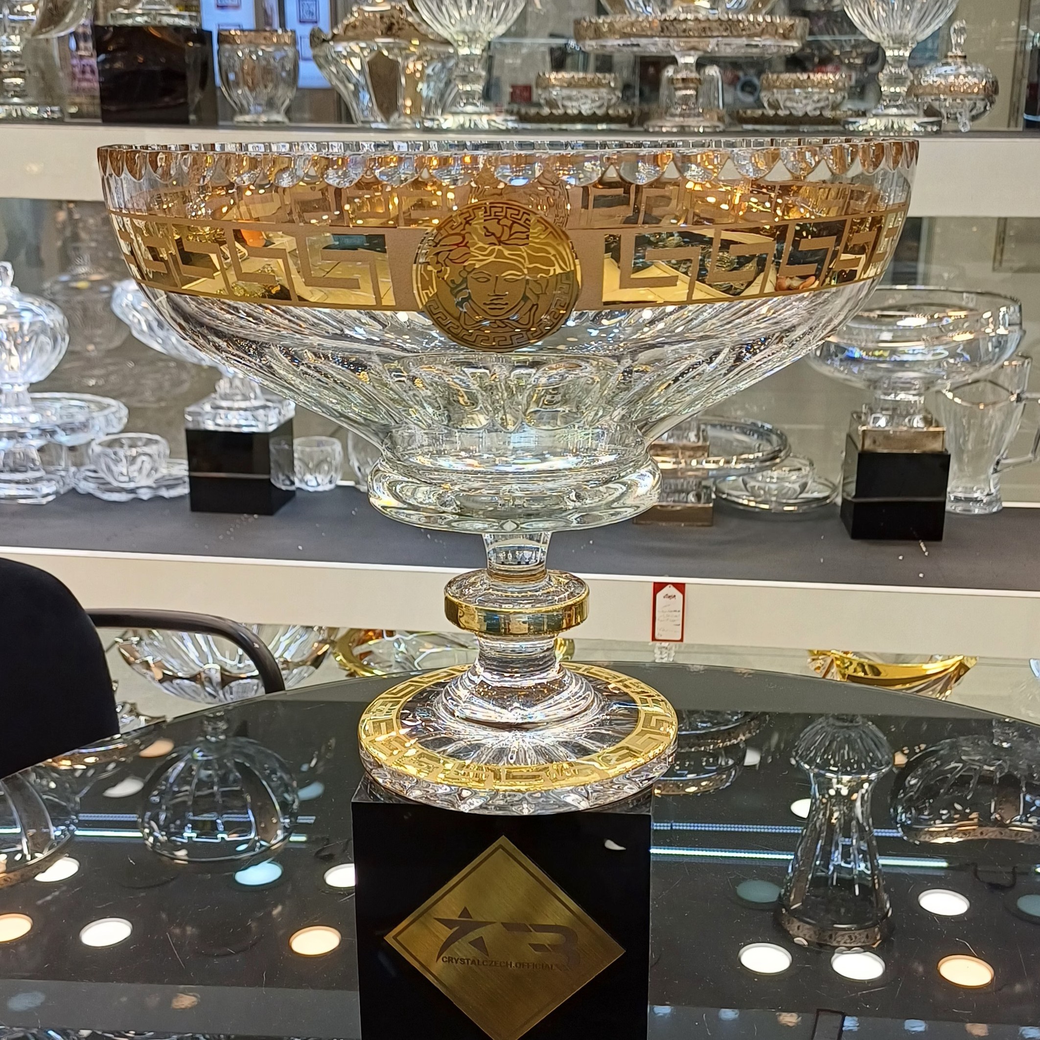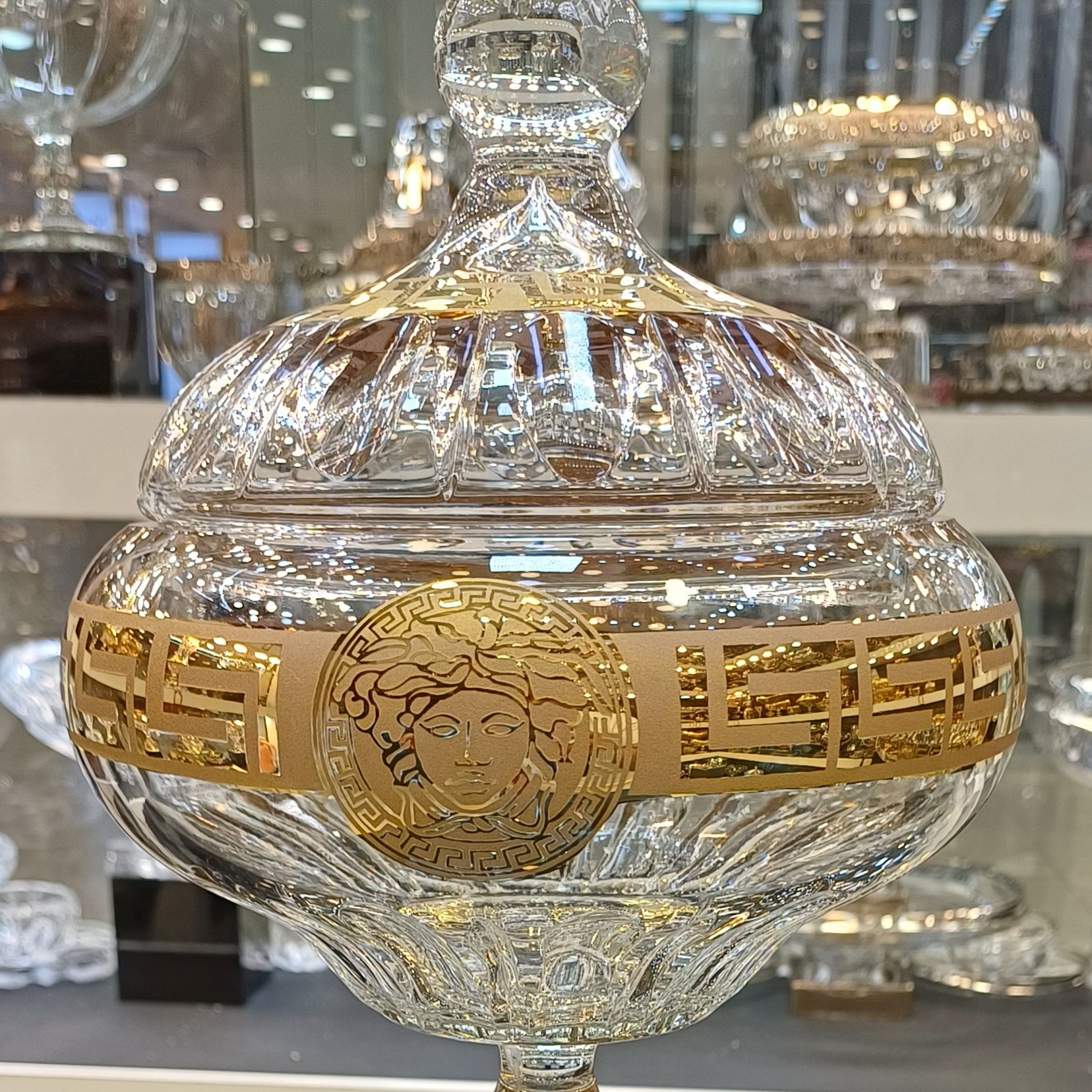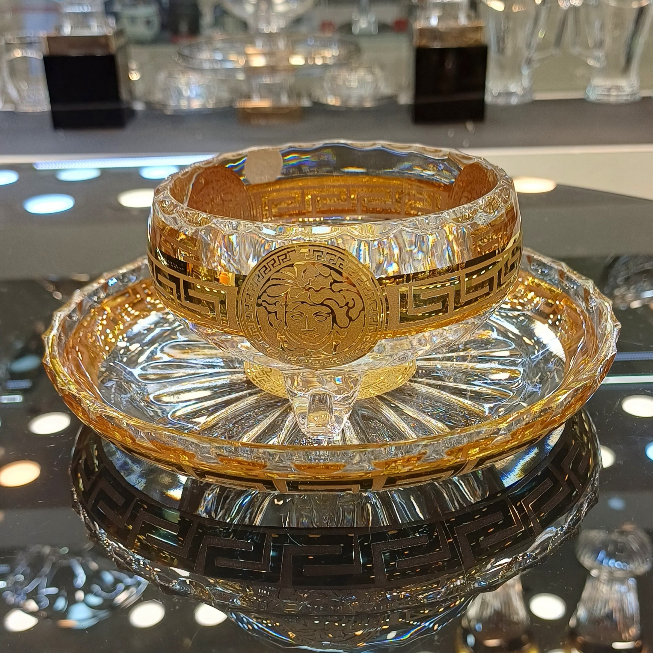 سرویس کریستال ورساچه طلایی تماما کاردست ۲۴٪ دارای گارانتی معتبر شامل :یک سری پیاله وپیش دستی میوه خوری ،شیرینی خوری،اجیل خوری،شکلات خوری ،فنجان،قندان ضمنا این سرویس گلدان،تنگ گیلاس , ،جاکاردی،نمکپاش،کشکول داره که به صورت انتخابی قابلیت اضافه شدن به سرویس داره وبه قیمت کل سرویس اضافه میشه فروش بصورت تکی وسرویس کامل