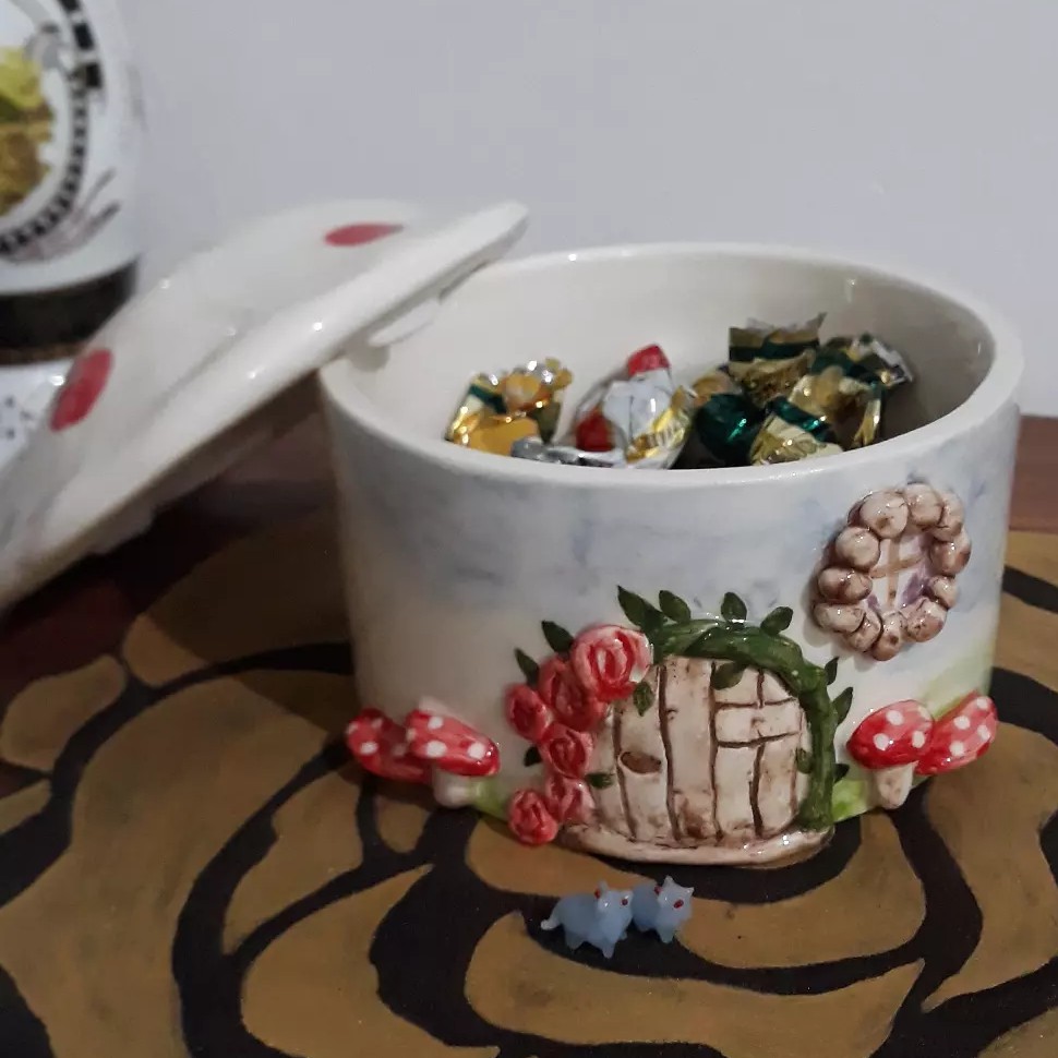 جا شکلاتی یا آجیل خوری سرامیک،دستساز فانتزی هدیه عالی و بصرفه دکور شیک و خاص