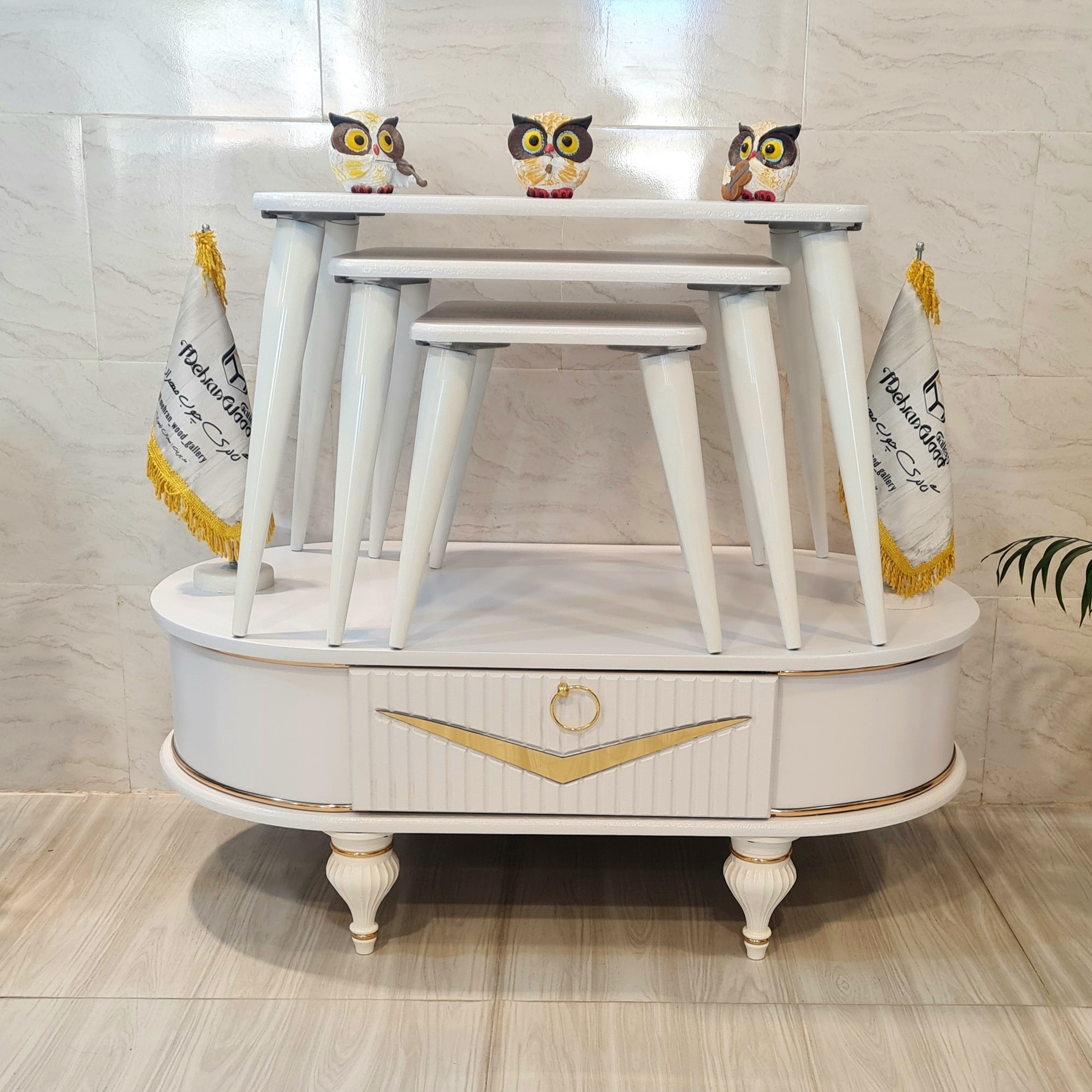 ست کامل میزجلومبلی 4تکه جاکفشی میز تلویزیون آینه کنسول تمام وکیومFRPسفید مبلمونسرا مدل 229680