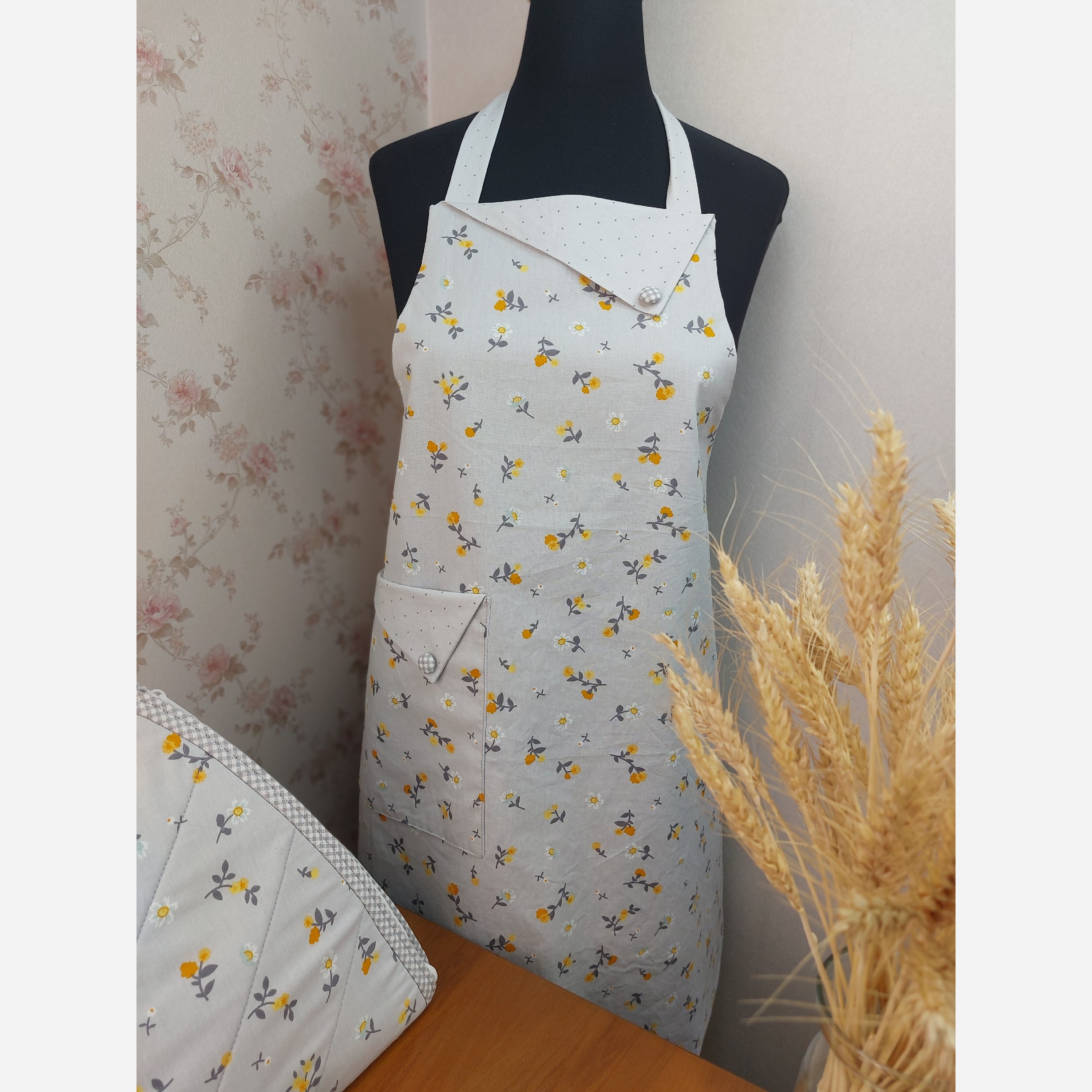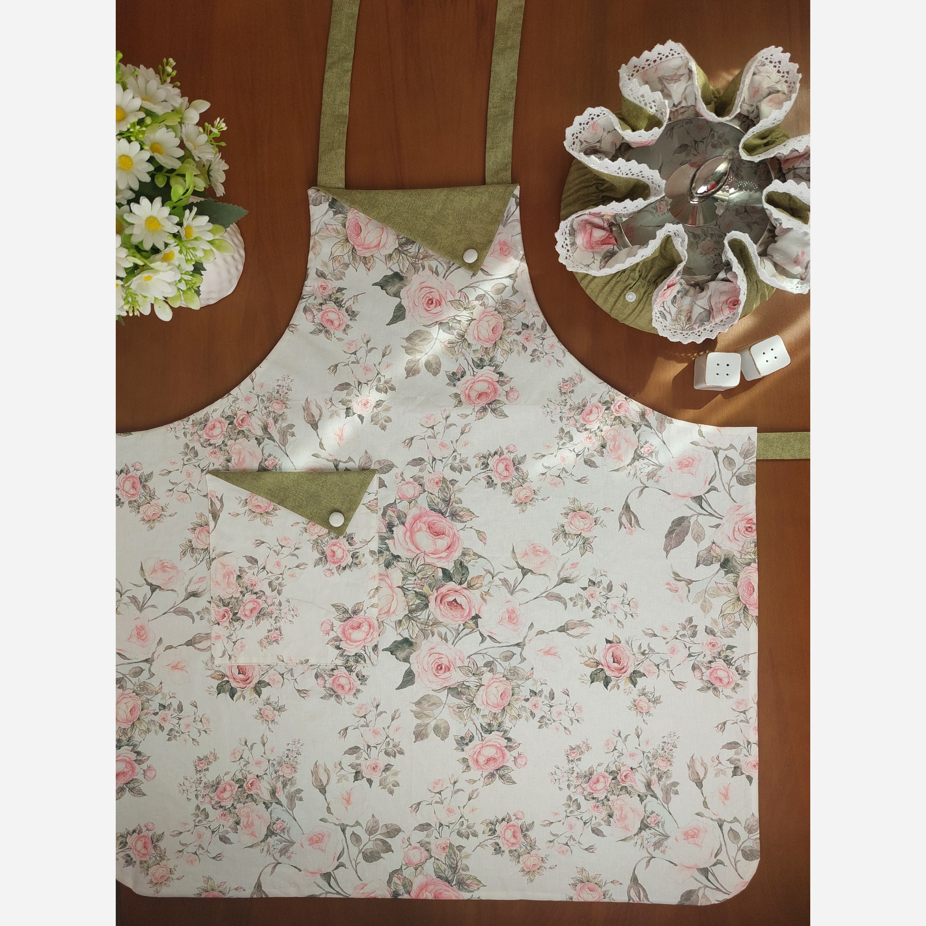 پیشبند یقه مثلثی جیبدار با کتان نخ ترک مبلمونسرا مدل 300952