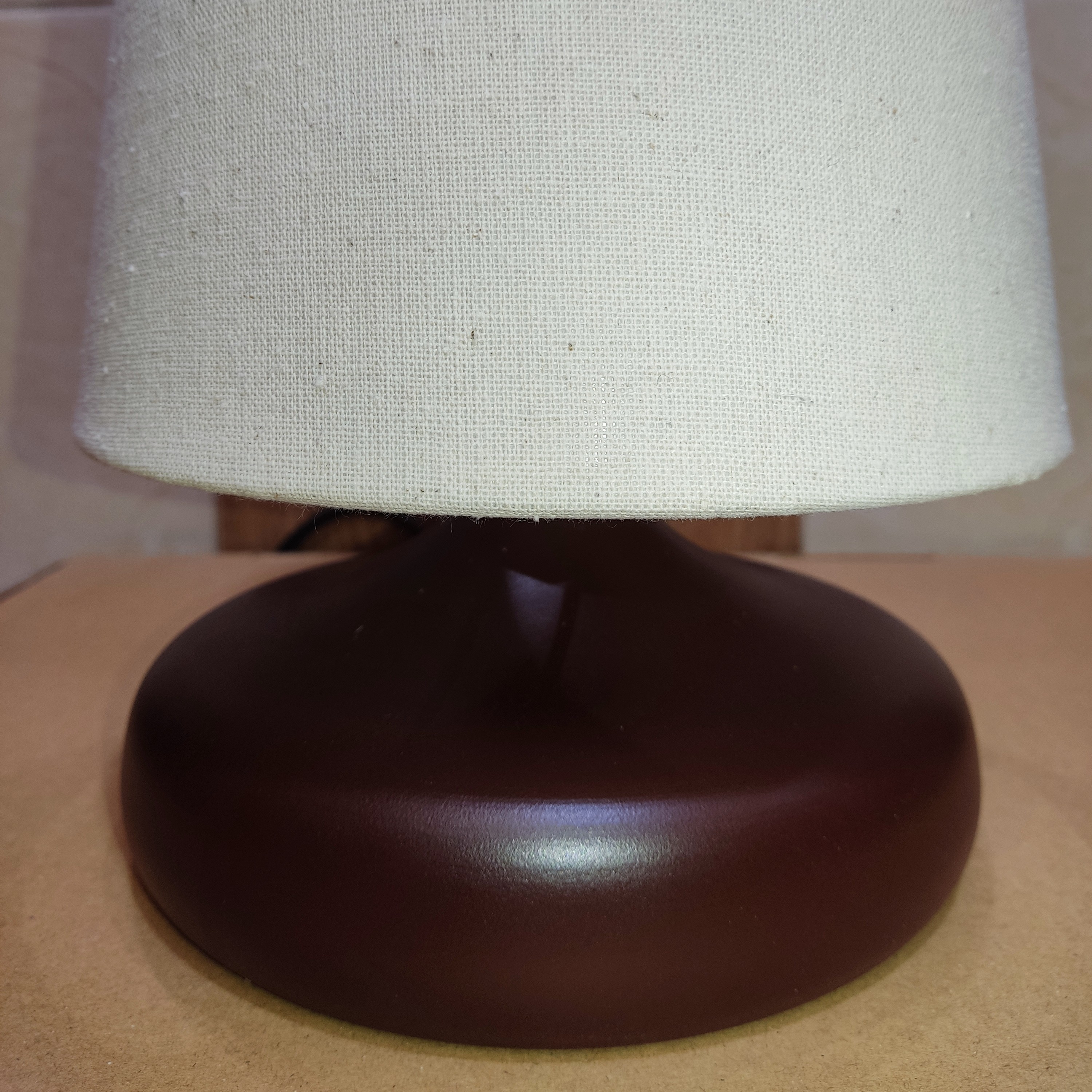 آباژور رومیزی کد:500 قهو ای با پایه فلزی مناسب برای اتاق خواب پایه با رنگ قهوه ای تیره و کلاهک با رنگ کرم میباشد. این محصول دارای رنگ بندی میباشد.