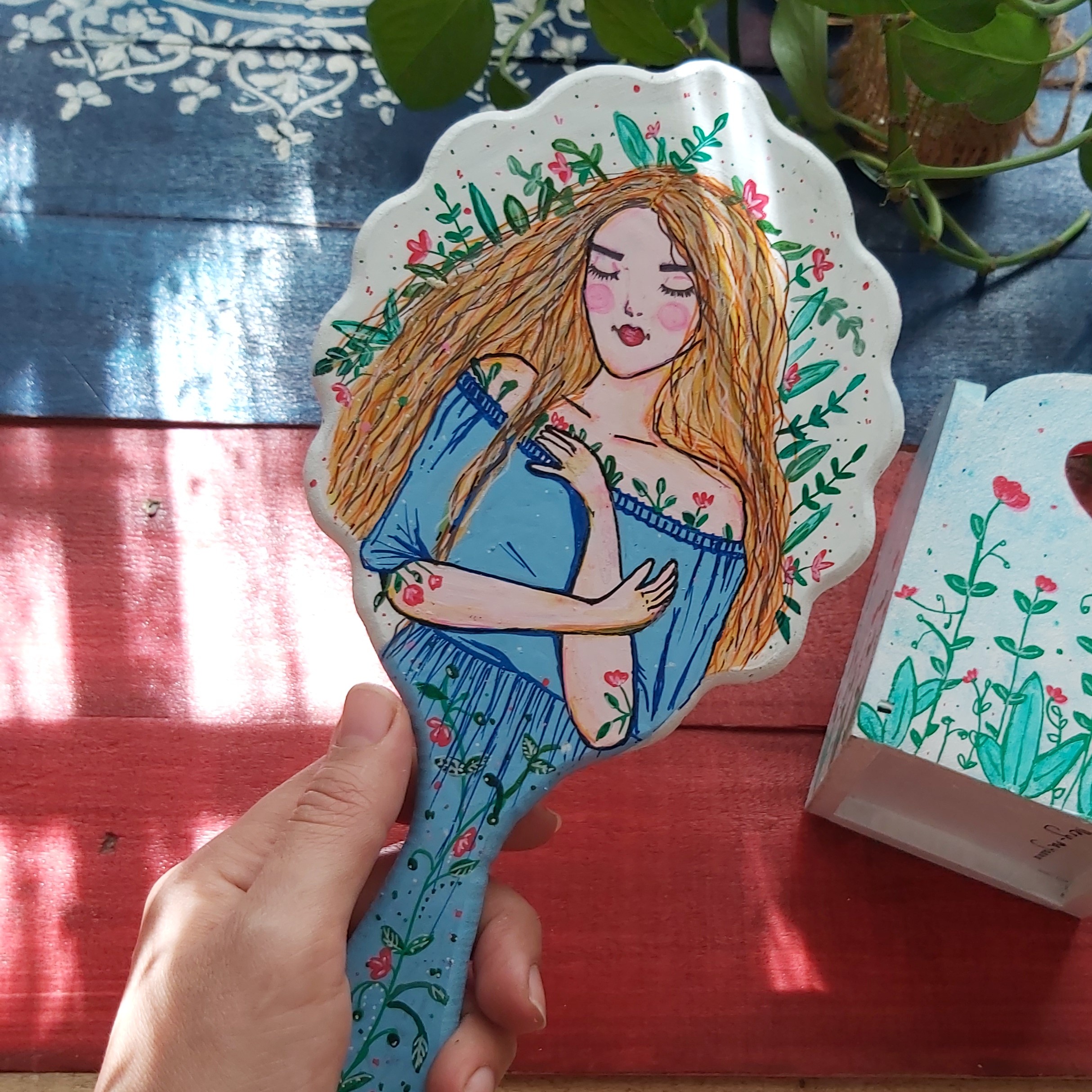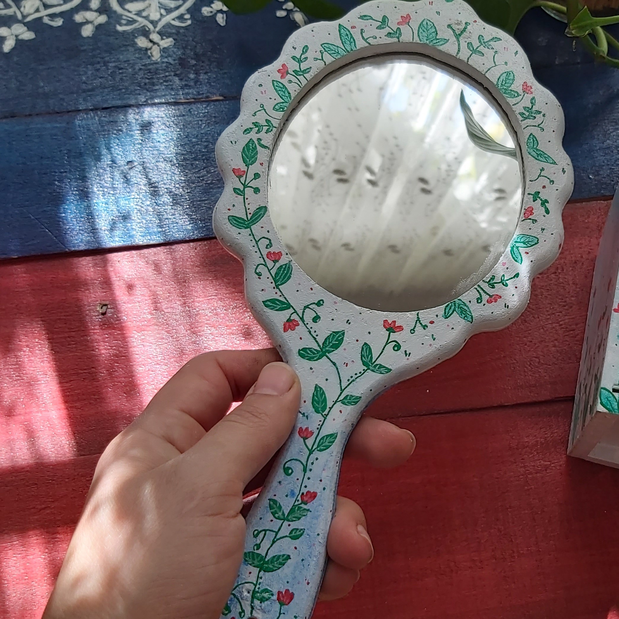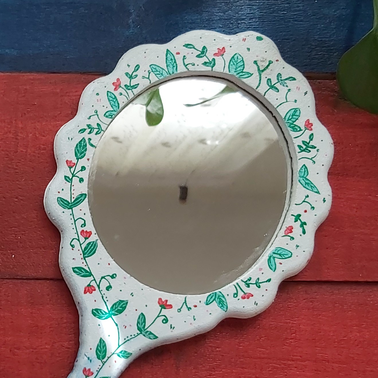 آینه چوبی ابعاد 37در18سانتیمتر طراحی شده با دست و رنگ اکریلیک قابل تمیز کردن با دستمال مرطوب مبلمونسرا مدل 261320