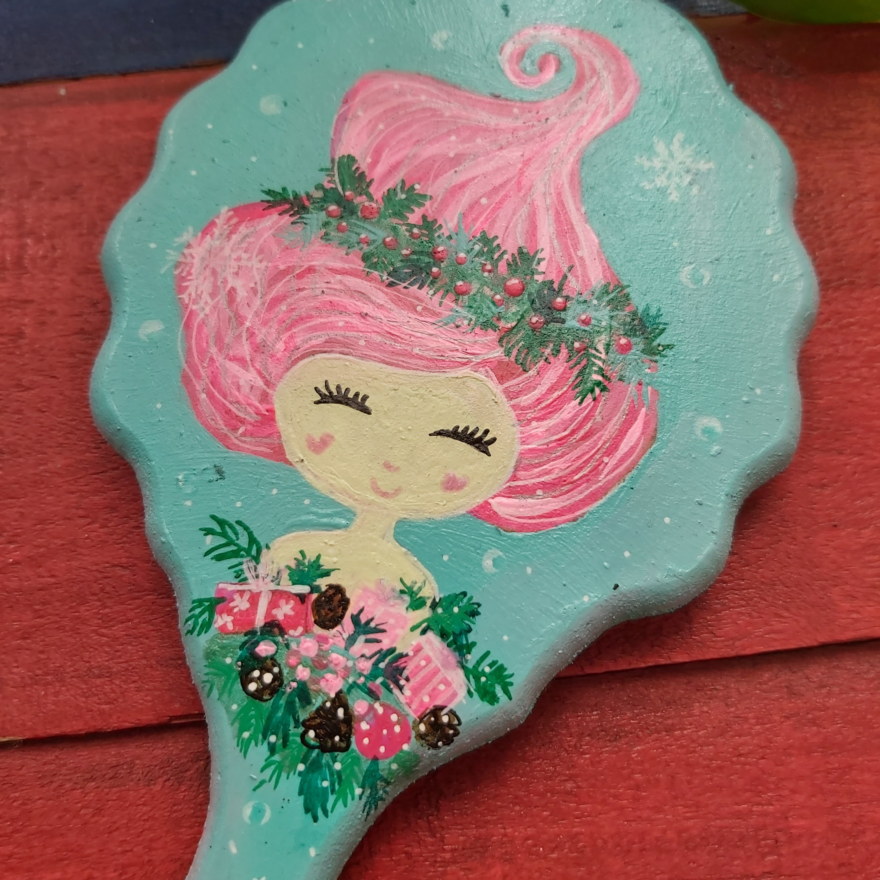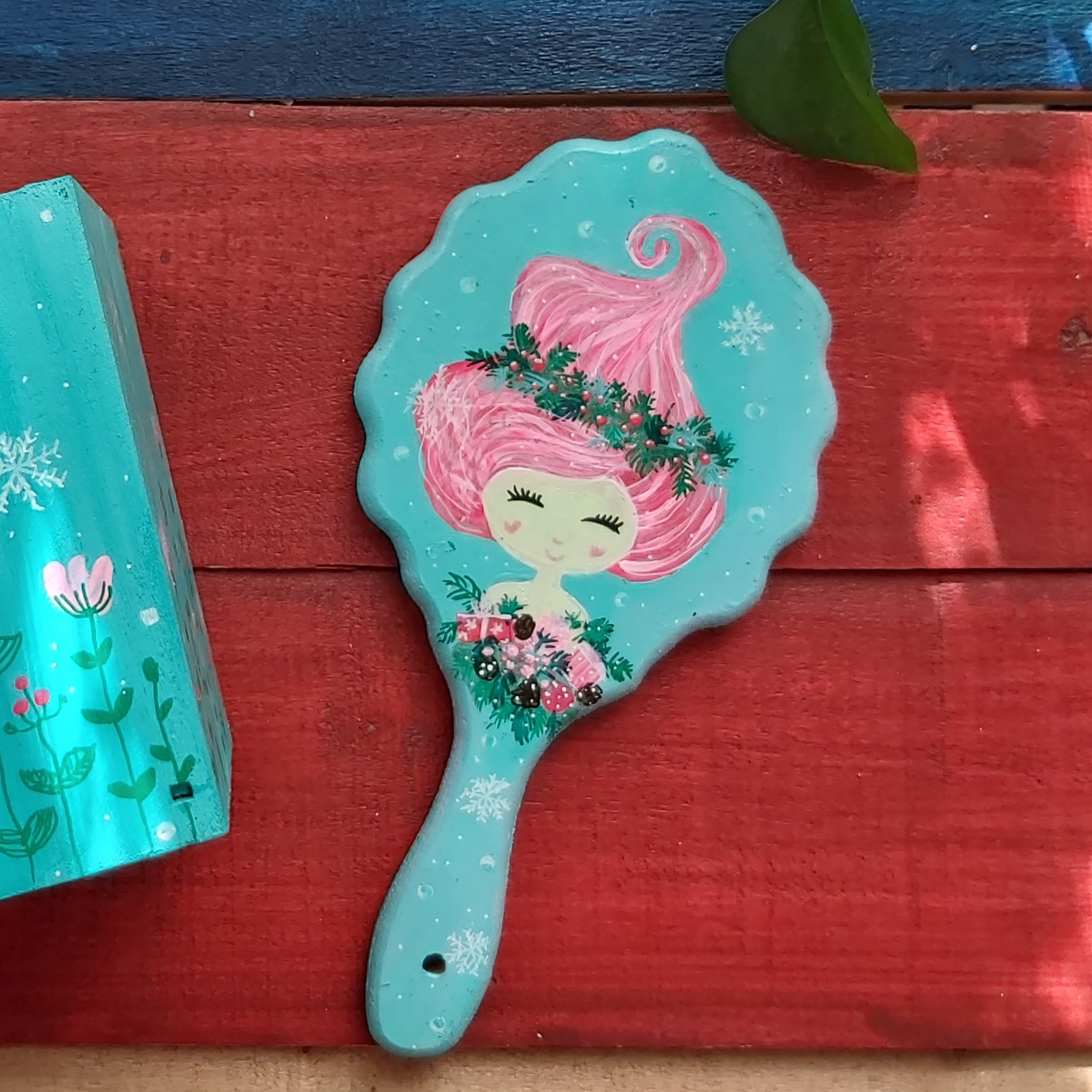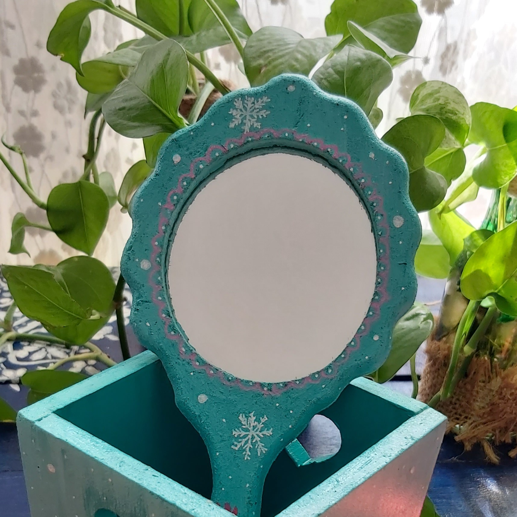 آینه چوبی 27در13سانتیمتر طراحی شده با دست و رنگ اکریلیک قابل تمیز کردن با دستمال مرطوب مبلمونسرا مدل 262452