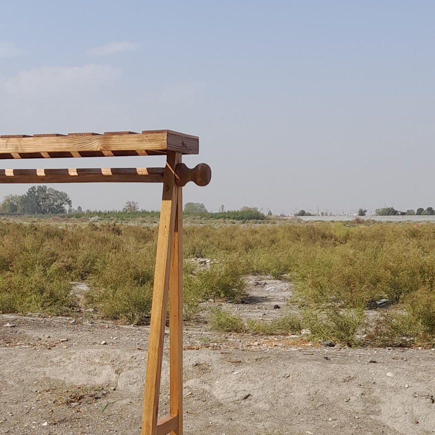رگال لباس چوبی نوجوان گوشواره ایی به رنگ قهوهای روشن ابعاد این نمونه رگال به طول ۸۰ سانتی متر در ارتفاع ۱۴۰ سانتی و عمق ۴۰ سانتی میباشد