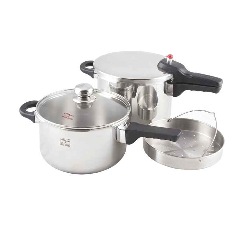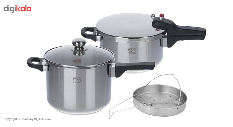 زودپز از جمله ظروفی است که در فعالیت پخت و پز بسیار محبوب بوده است. در بسیاری از شرایط پیش آمده که باید آشپزی را با سرعت بیشتری انجام داد؛ در این شرایط، استفاده از سرویس زودپز مدل دوقلو کاربرد خوبی خواهد داشت. این مدل دارای دو زودپز با سایزهای 4.5 و 6 لیتری با بدنه استیل است که قطر بدنه دارای ضخامتی زیاد خواهد بود. به همراه این دو زودپز، درپوش شیشهای و یک سبد برای بخارپز قرار دارد که باعث شده کارایی آن بیشتر شود. بنابراین سبد فلزی که در کنار این مدل ارائه میشود برای پخت و پز غذاهای بخارپز کاربرد خواهد داشت و جنس آن ضدزنگ است. درپوش شیشهای باعث میشود بتوان از آن به عنوان قابلمه نیز استفاده کرد. از دیگر ویژگیهای سرویس زودپز مدل دوقلو دسته های بلندی است که روی بدنه طراحی شده و دست شما را از حرارت و آسیب دور خواهد کرد.
