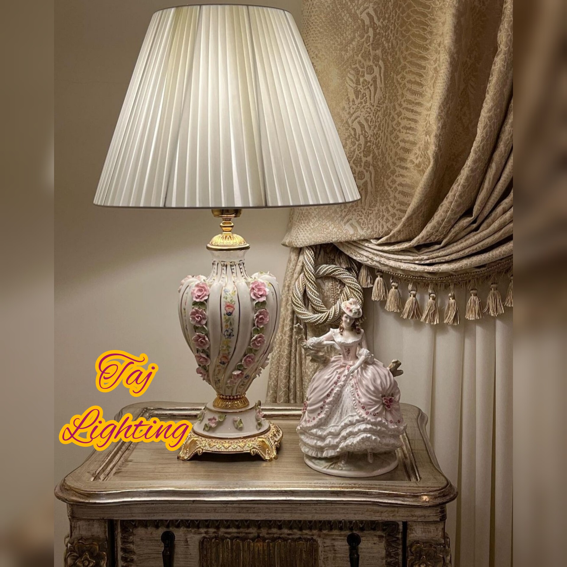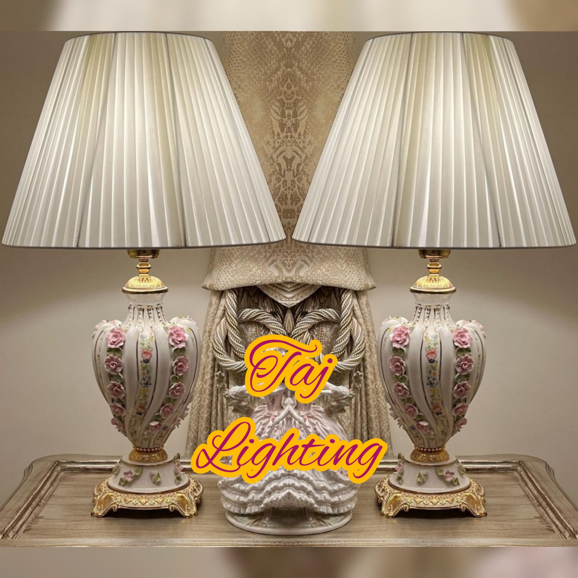 💥قیمت درج شده ، قیمت هر عدد آباژور می باشد جنس و سط تنه : چینی رنگ شید: کِرِم ارتفاع : حدود 67 پایه برنز با آبکاری آنتیک