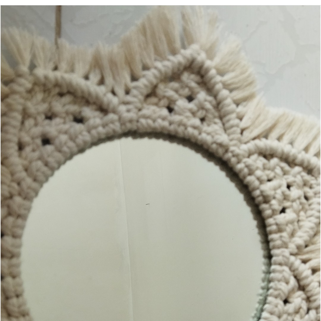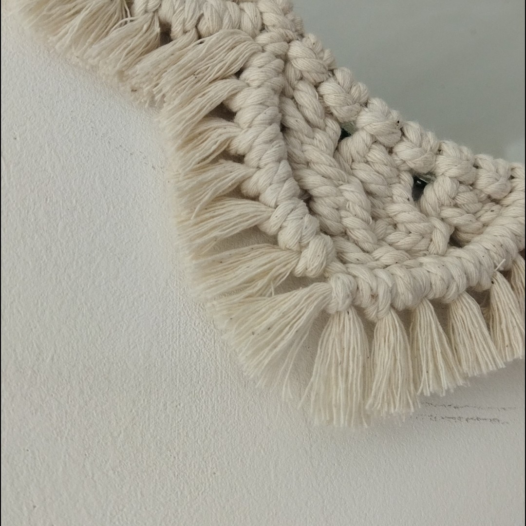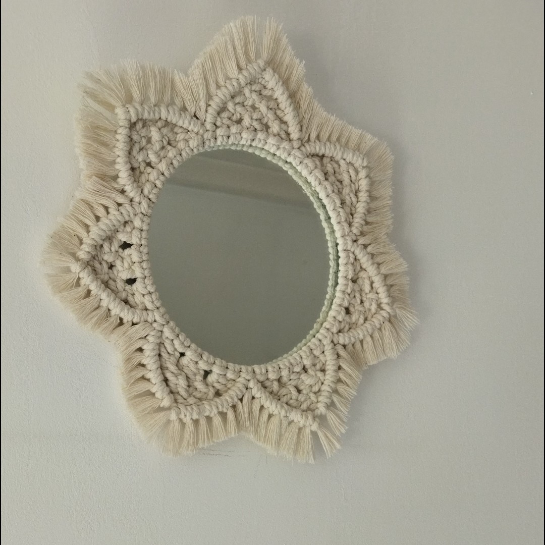 قطر آینه۱۸سانتی متر در هر سایزی که مد نظرتون هست قابل اجراست بافته شده با نخ پنبه قابل سفارش در رنگ و طرح و اندازه دلخواه