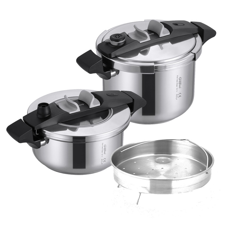 مدرن ترین و زیبا ترین زودپزهای دنیا توسط شرکت GIFFINI طراحی و تولید میشود و همچنین از نظر اطمینان کارکرد جزو سریع ترین و مطمین ترین زودپزها میباشد که تمامی استانداردهای اروپا را دارا میباشد و این راحتی را برای شما فراهم می اورد که یکی از بهترین زودپزهای دنیا را با قیمتی مناسب تهیه نمایید.همچنین برای اولین بار درب شیشه ای قابلمه که بصورت بسیار مدرن طراحی شده برای این کالا در نظر گرفته شده است.