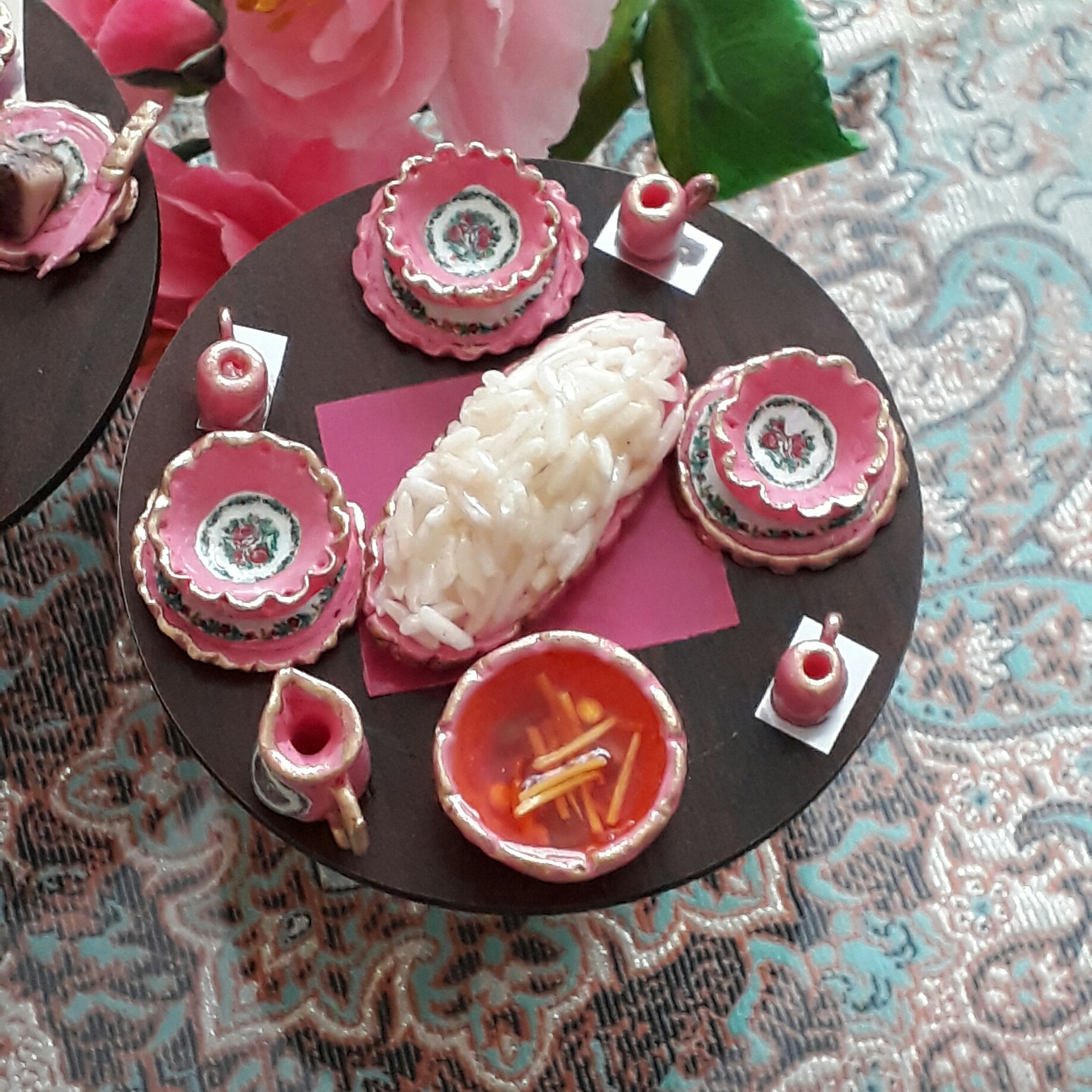 میز گرد6سانتی به همراه وسایل مینیاتوری اگه دوست داشتی میزش هم بزرگتر بشه قبل سفارش بهم بگو فقط قیمتش دیگه فرق می کنه 😊😊