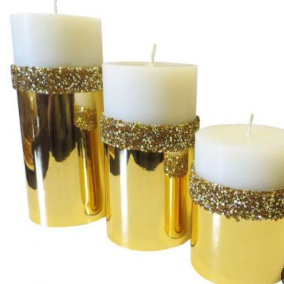 شمع استوانه ای . ست سه تایی. طلایی و نقره ای مبلمونسرا مدل 282037