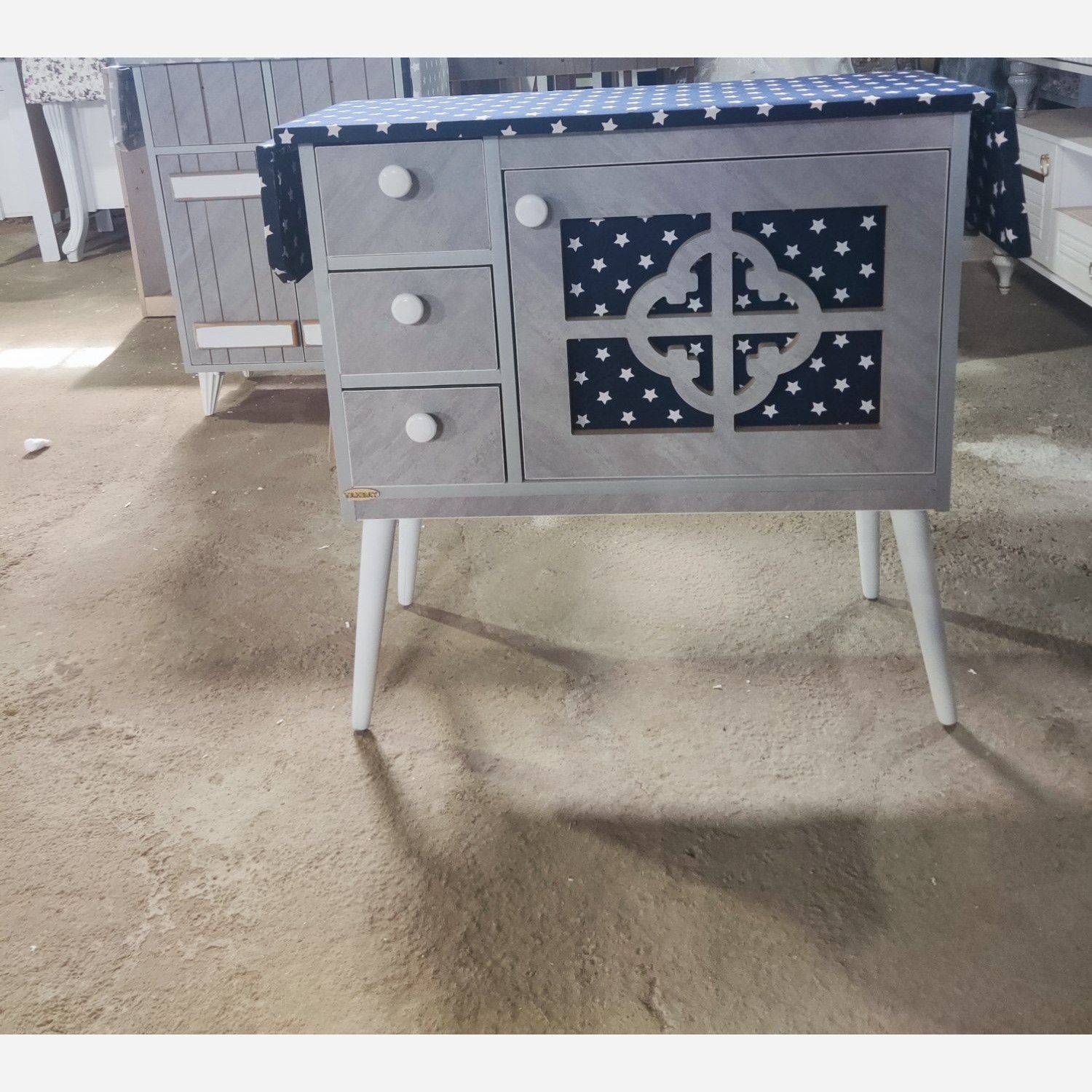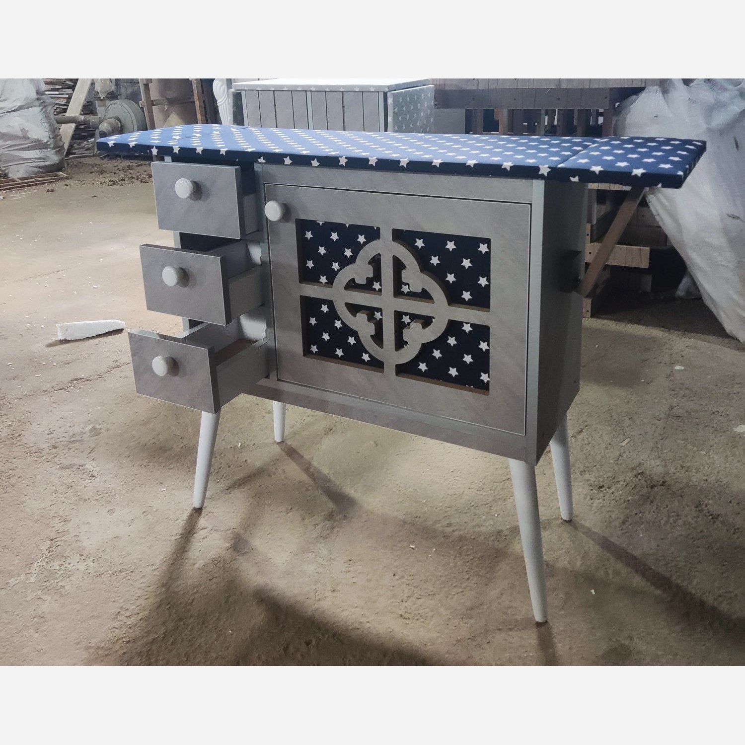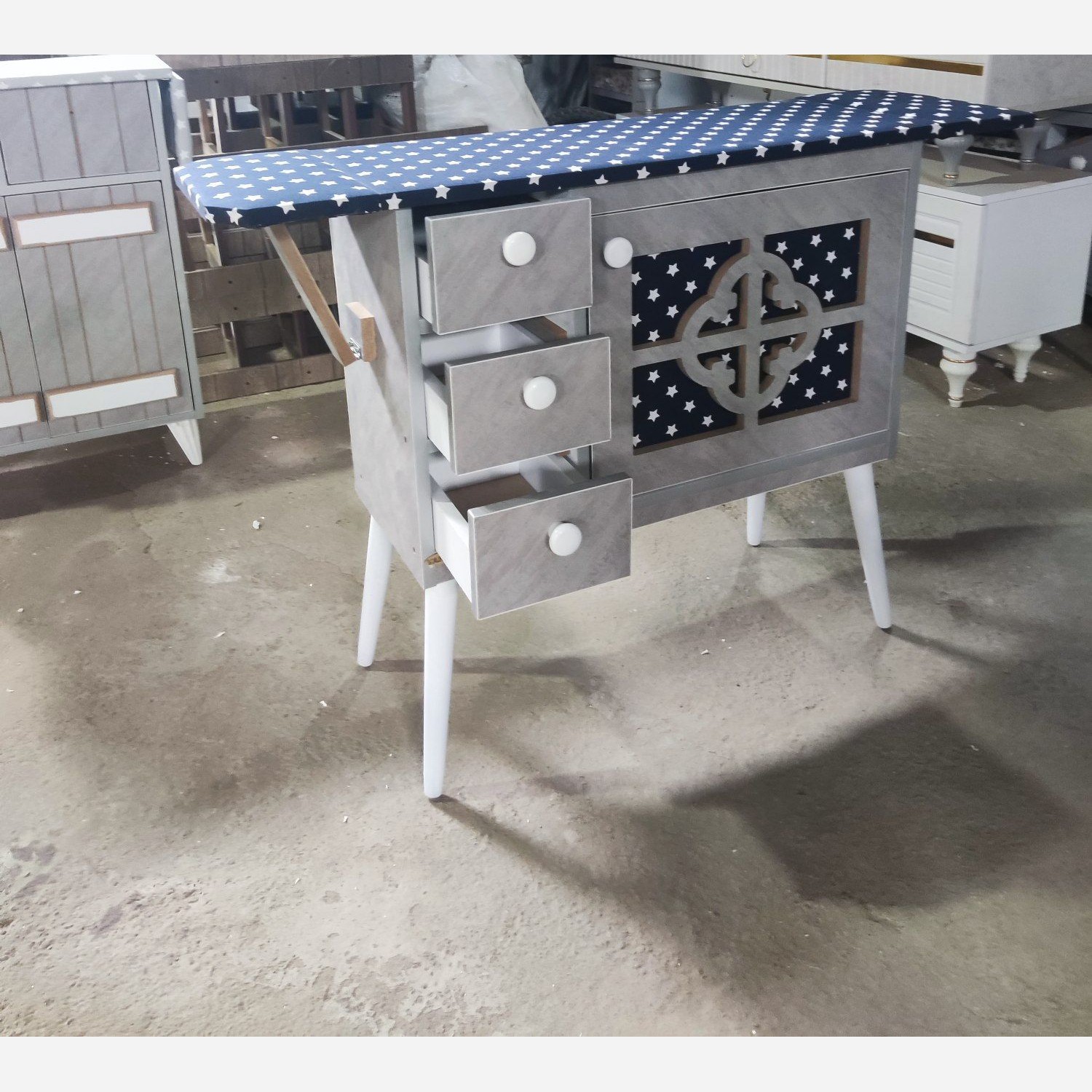 میز اتو مدل تلوزیونی طوسی با پارچه ستاره ای طوسی و ابی مبلمونسرا مدل 219349