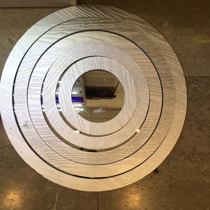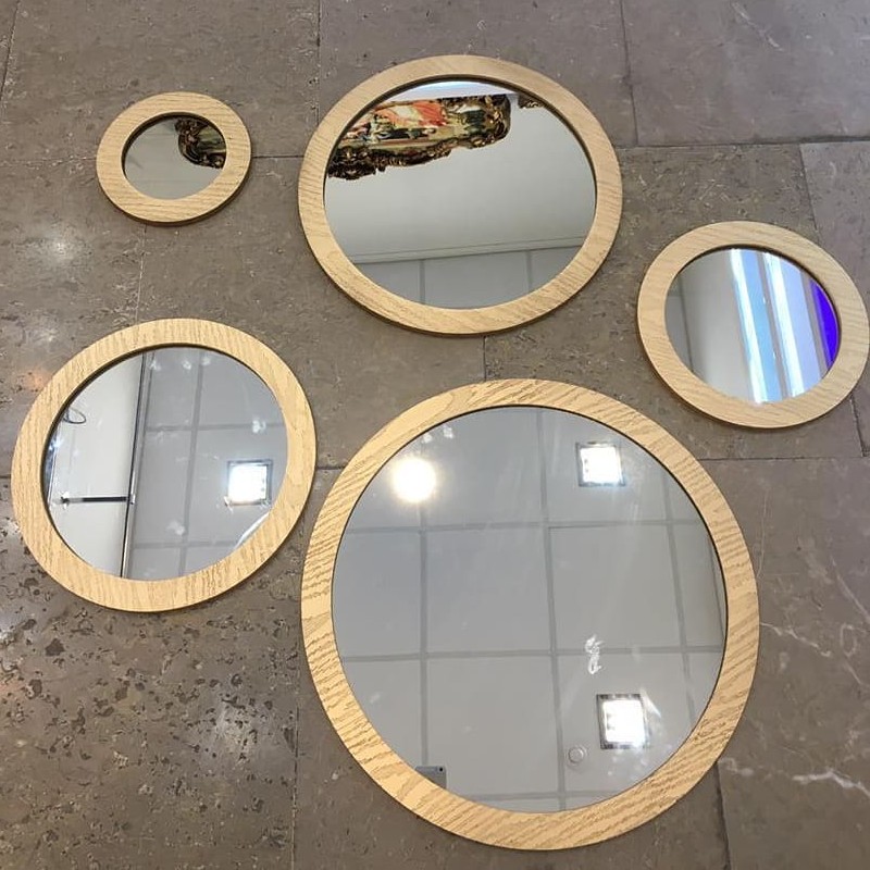 آینه گرد های 5تایی موجود در رنگ های نقره ای سفید قهوه ای طلایی اندازه قطر بزرگ 43 اندازه قطر کوچک 16 جنس ام دی آف ها 8میل بوده شست آینه برای نصب به دیوار تعبیه شده آینه ها شفاف با ضخامت 4میل هزینه ارسال به صورت هست