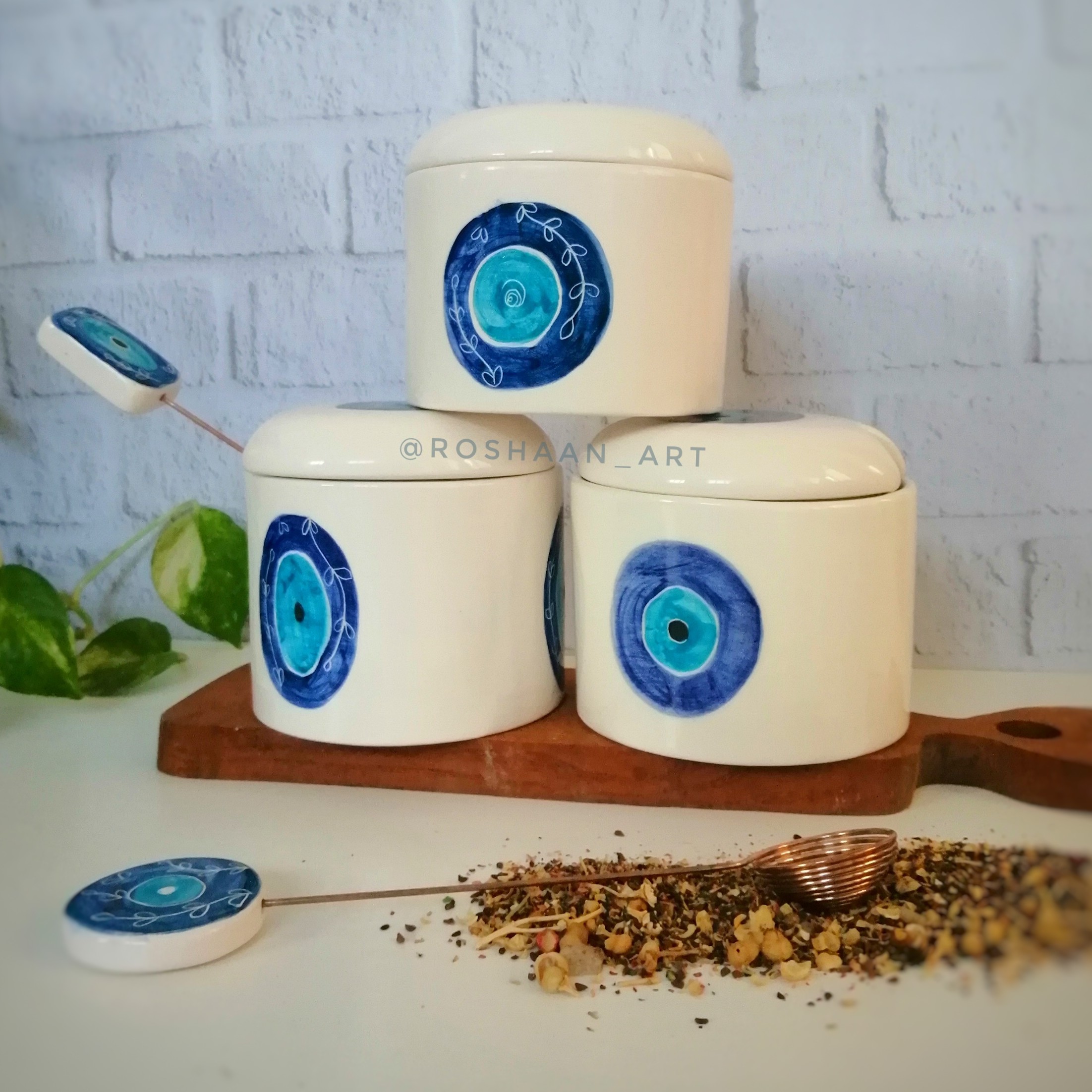 بانکه ها سرامیکی و دستساز هستن دارای لعاب ارتفاع و قطر 10 سانت دسته اسپنددودکن سرامیکی هستش قیمت برای بانکه با اسپنددودکن همراهش هستش