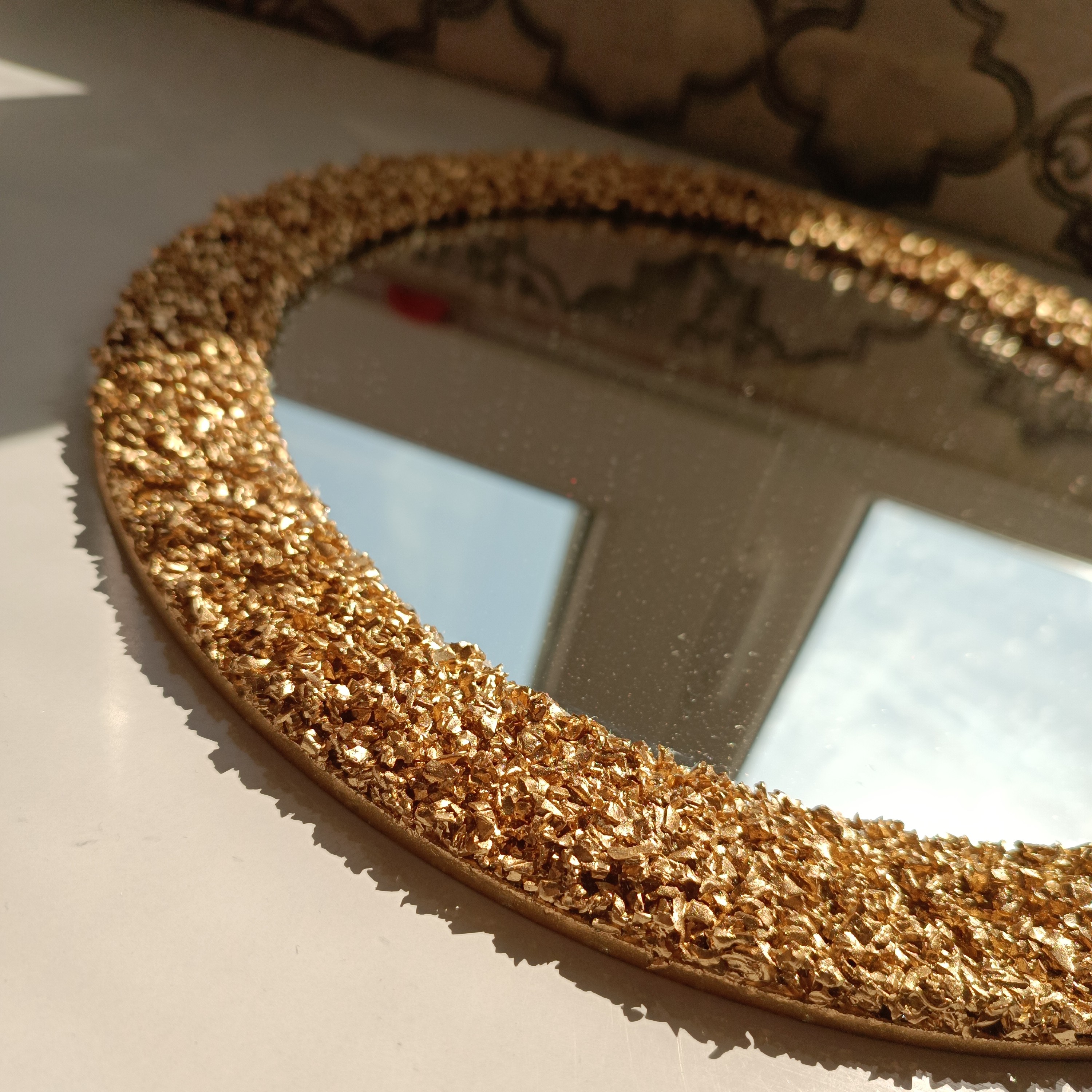اینه دکوراتیو دور کریستال طلایی اینه دکوری اینه دیواری تزیینی اینه کریستالی رزینی اینه رزینی مبلمونسرا مدل 261593