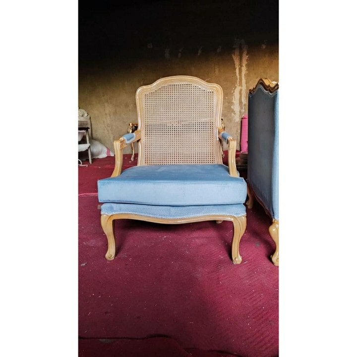 مبلمان ابزاری فرانسوی شامل یک سه نفره دو عدد پشت تور دو عدد کویین دو عدد صندلی میزبان میباشد چوب راش پارجه ترک مارک جاسبین و و فوم داخل کار سرد میباشد بسیار شیک و خاص میباشد