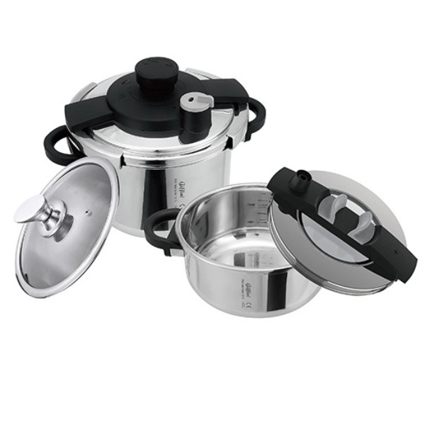 مدرن ترین و زیبا ترین زودپزهای دنیا توسط شرکت GIFFINI طراحی و تولید میشود و همچنین از نظر اطمینان کارکرد جزو سریع ترین و مطمین ترین زودپزها میباشد که تمامی استانداردهای اروپا را دارا میباشد و این راحتی را برای شما فراهم می اورد که یکی از بهترین زودپزهای دنیا را با قیمتی مناسب تهیه نمایید.همچنین برای اولین بار درب شیشه ای قابلمه که بصورت بسیار مدرن طراحی شده برای این کالا در نظر گرفته شده است.